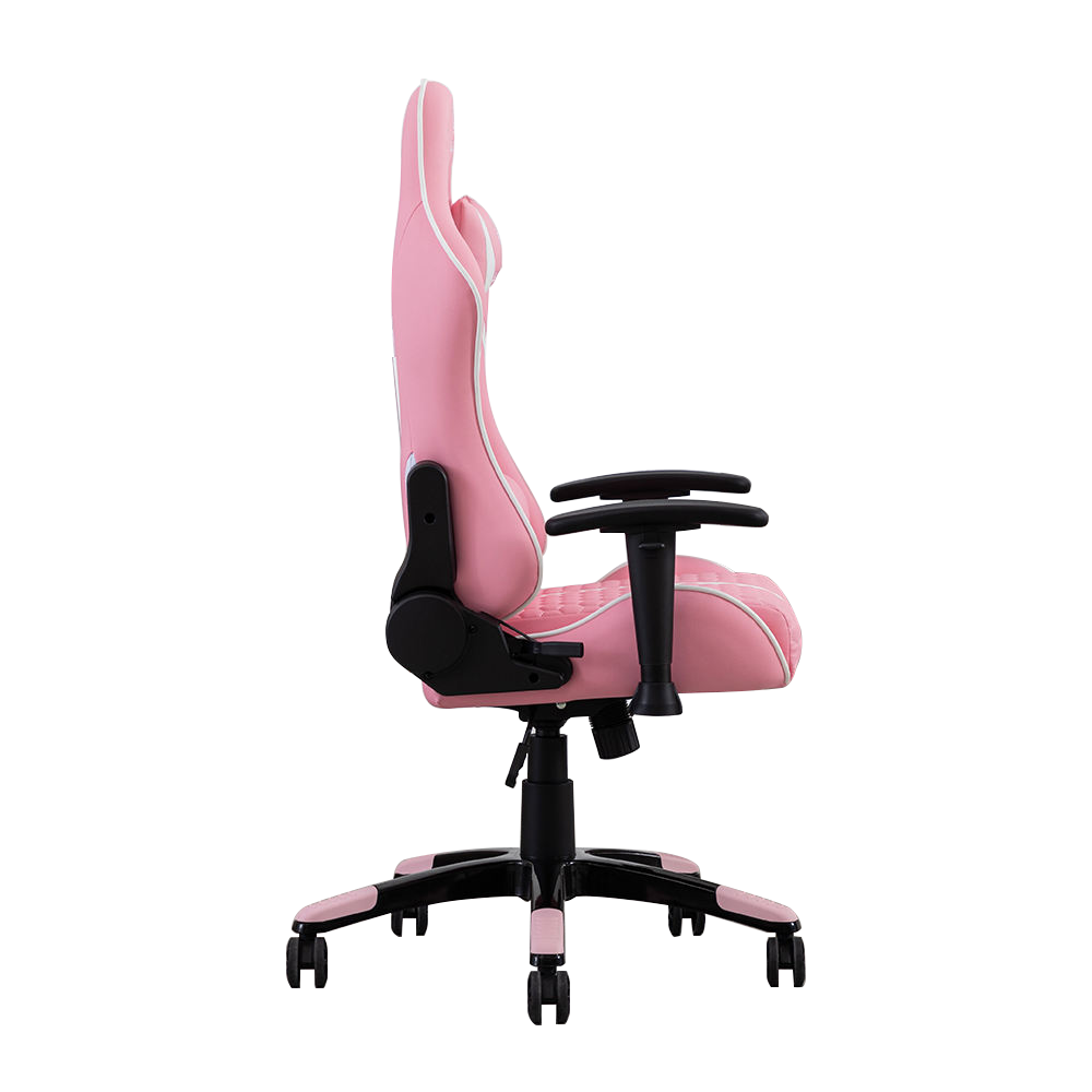 Pink gaming chair with 90-118 degree angle adjustment for girls' gaming chair