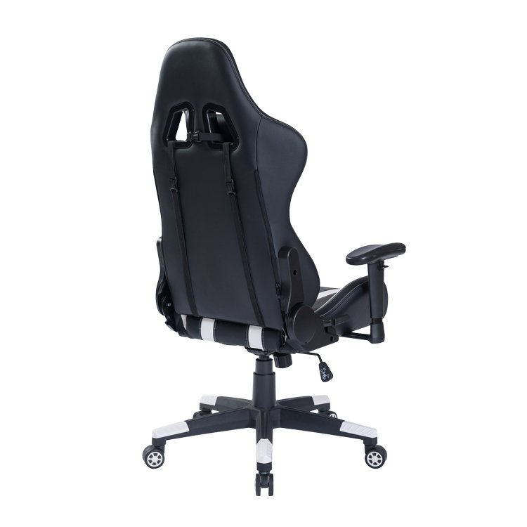 Low cost customized comfortable ergonomic synthetic leather rotating reclining steel frame gaming chair
