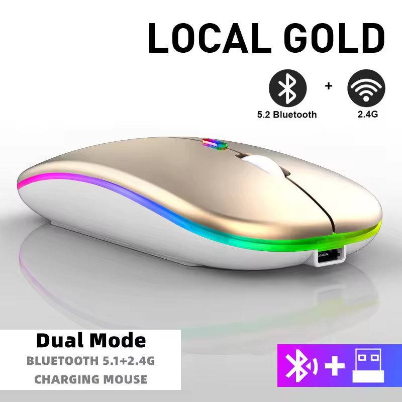 RGB rechargeable ergonomic gaming wireless mouse with LED backlight USB interface and silent mini style, suitable for laptops