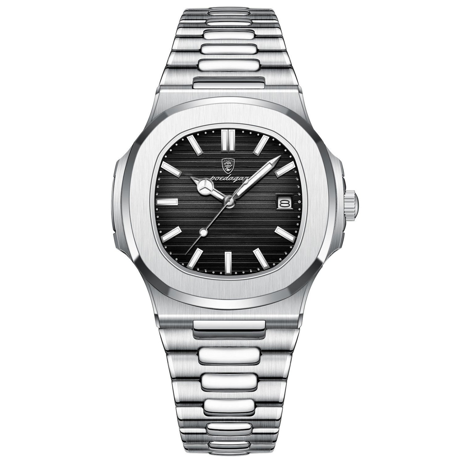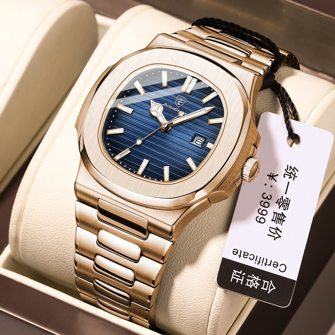 613 Gold Luxury Fashion Quartz Watch for Men, Business Stainless Steel, Waterproof, Luminous, Date, Square