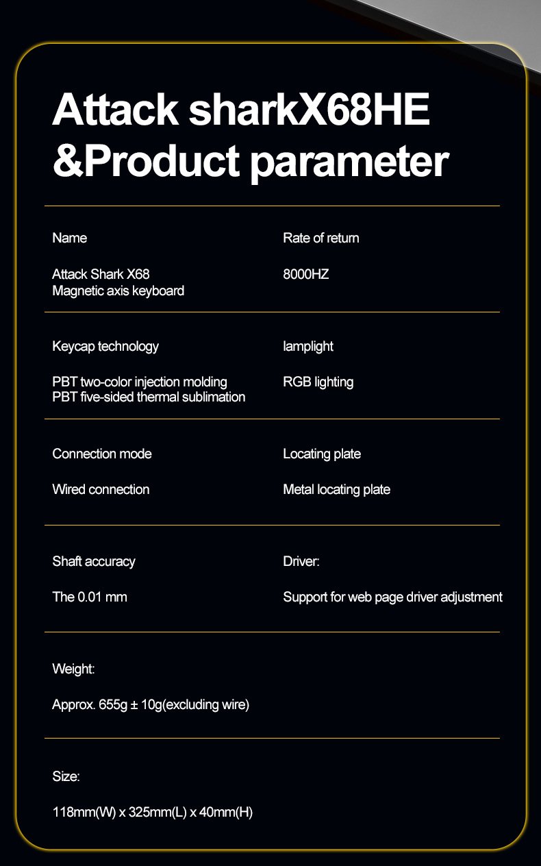 Attack Shark X68HE Magnetic Axis Wired Mechanical Keyboard RGB Gaming Esports RT Adjustable Delay Mechanical Keyboard