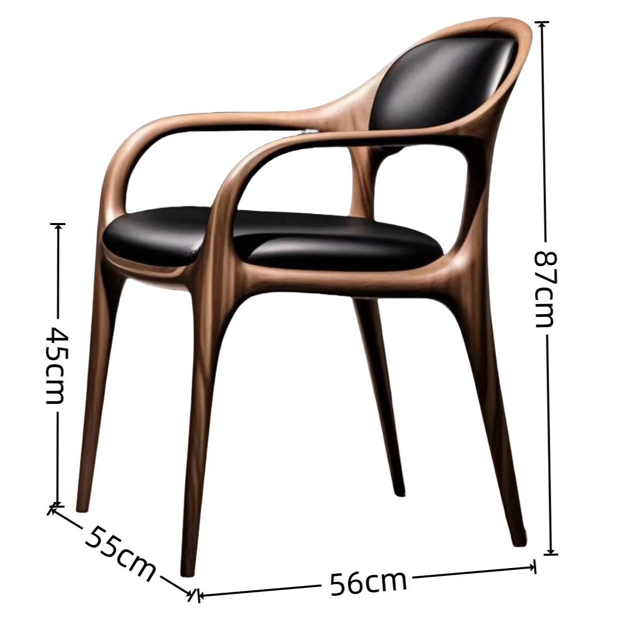 Nordic minimalist wooden armchair with solid walnut leather back for home use