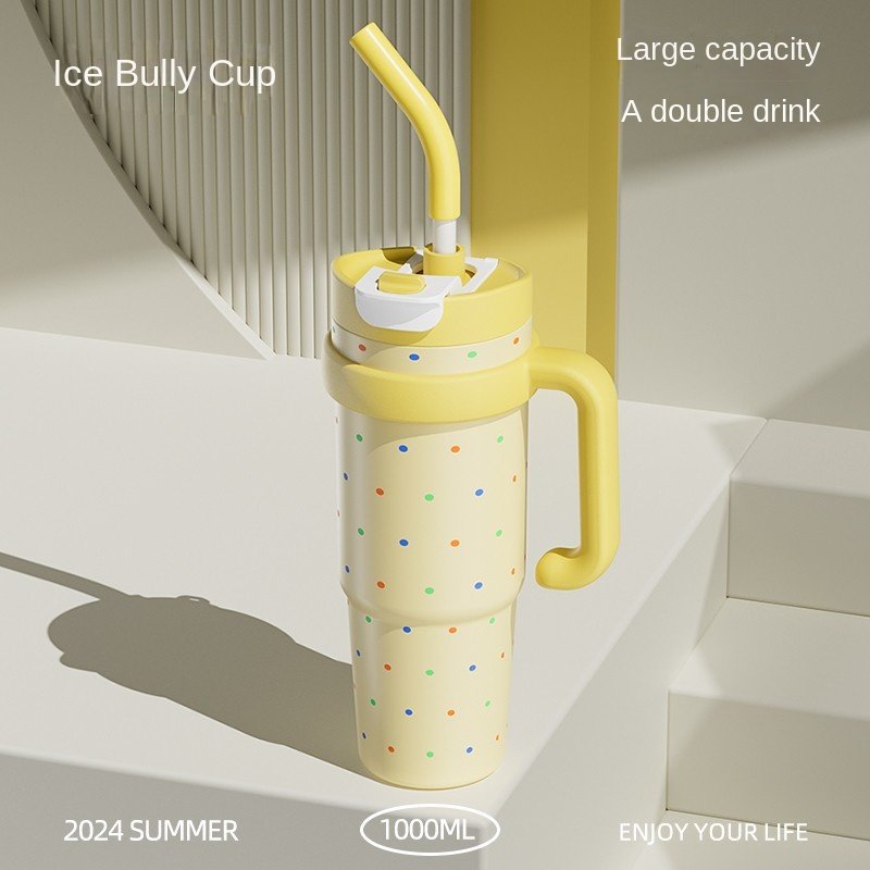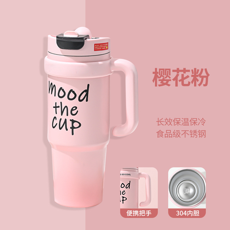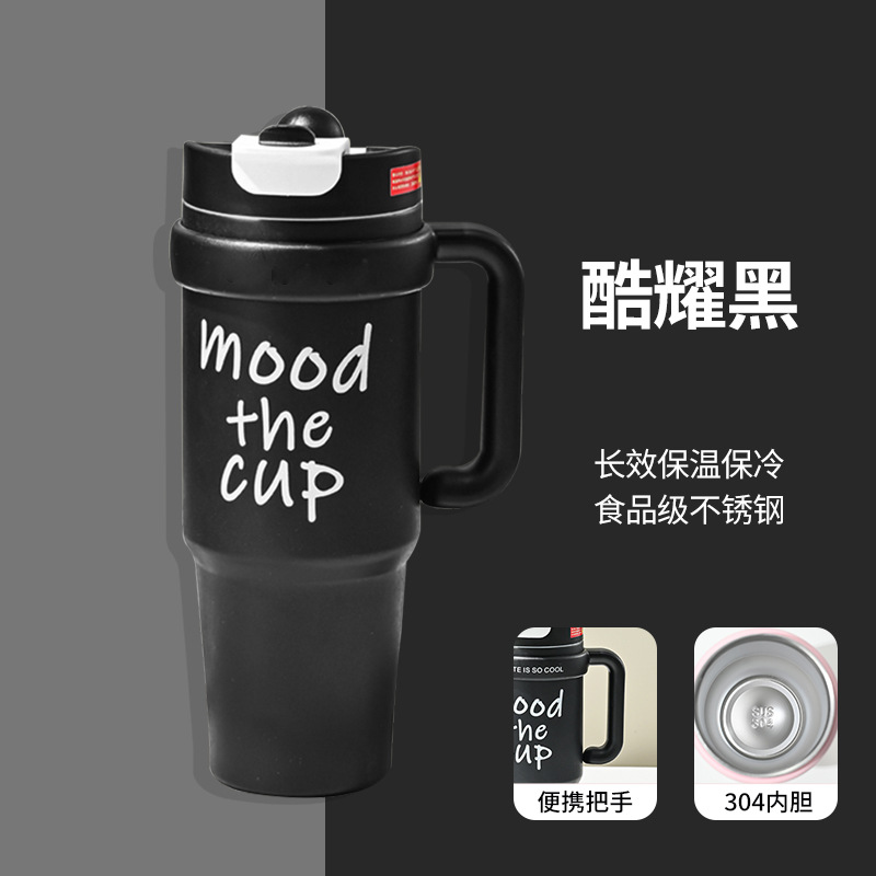 Large capacity 900ml giant thermos cup with straw classic design vacuum office car travel and back to school