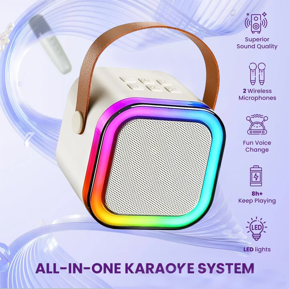 Children's portable mini K12 karaoke speaker RGB light dual microphone wireless Bluetooth audio 10W home theater outdoor singing battery