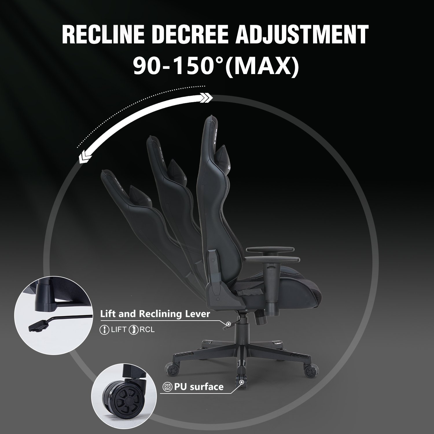 Ruibao modern 3D adjustable armrest, customized backrest support, synthetic leather swivel chair headrest, 4-stage air pressure lifting and tilting function