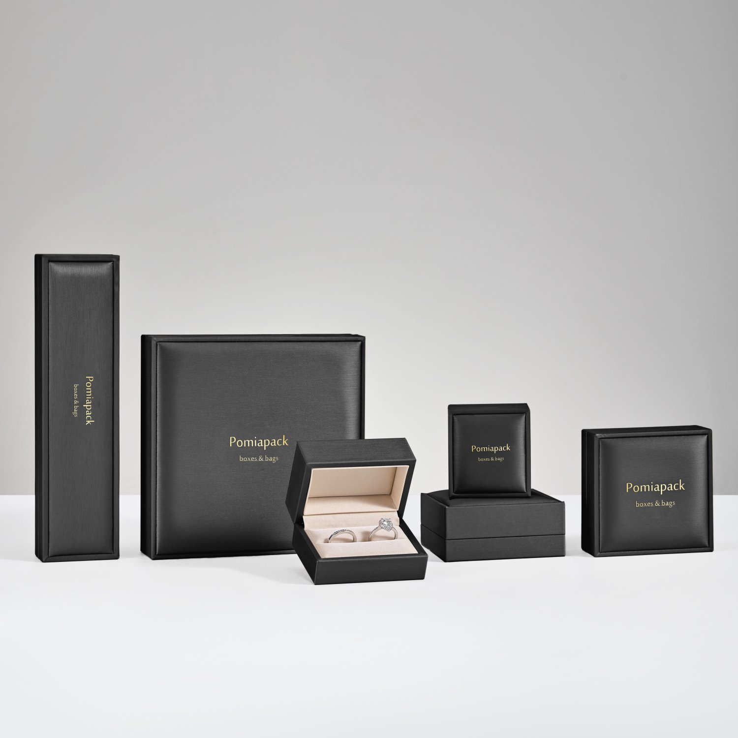 Customized Personalized Logo Black Jewelry Packaging Gift Box Ring Bracelet Earnail Necklace PU Leather Wedding Jewelry Box