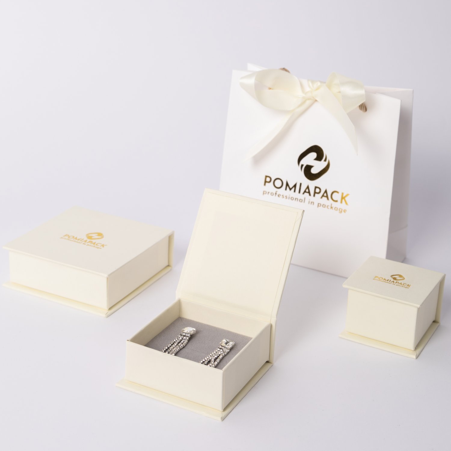 Customized logo cream gift jewelry box, customized paper cardboard magnetic earring jewelry box, jewelry packaging