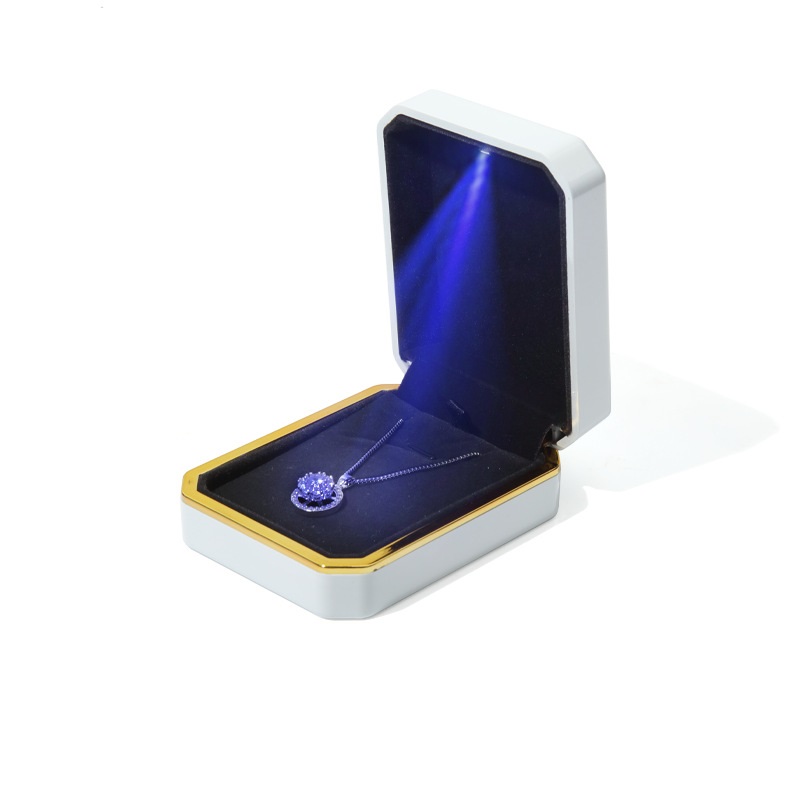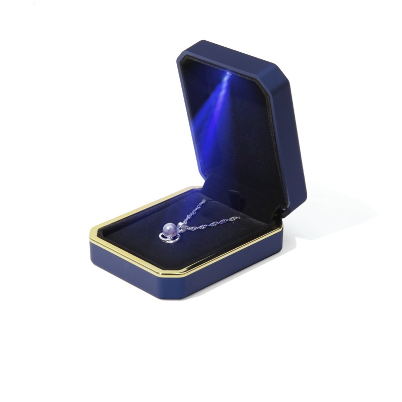 2026 Fashion Luxury Black OEM ODM Customized Brand Logo Square hinge Closed LED01B Valentine's Day Jewelry Box Necklace Box
