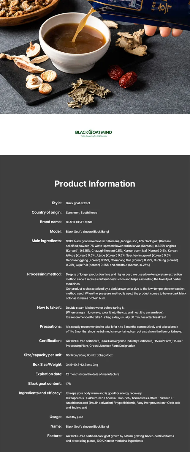 [Black goat Mind] Health Food Black Goat's Sincere Black Bangi 90ml x 30 Packs for Daily Strength and Immune Support