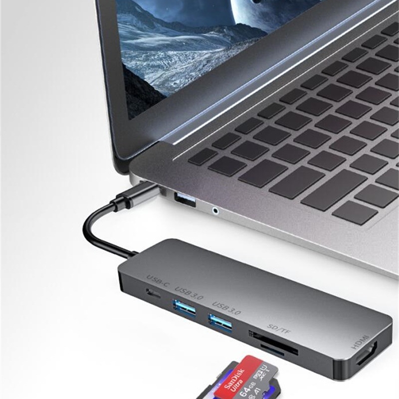 USB Hub 6 in 1 HDMI I Port Type-C Hub MacBook Docking Station for Mac Pro Adapter with USB 3.0 TF SD USB Hub