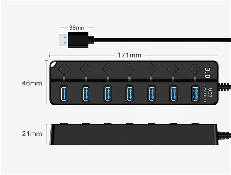 USB 3.0 7-port data hub with independent power switch factory wholesale, suitable for Apple professional desktop and laptop computers - in stock!