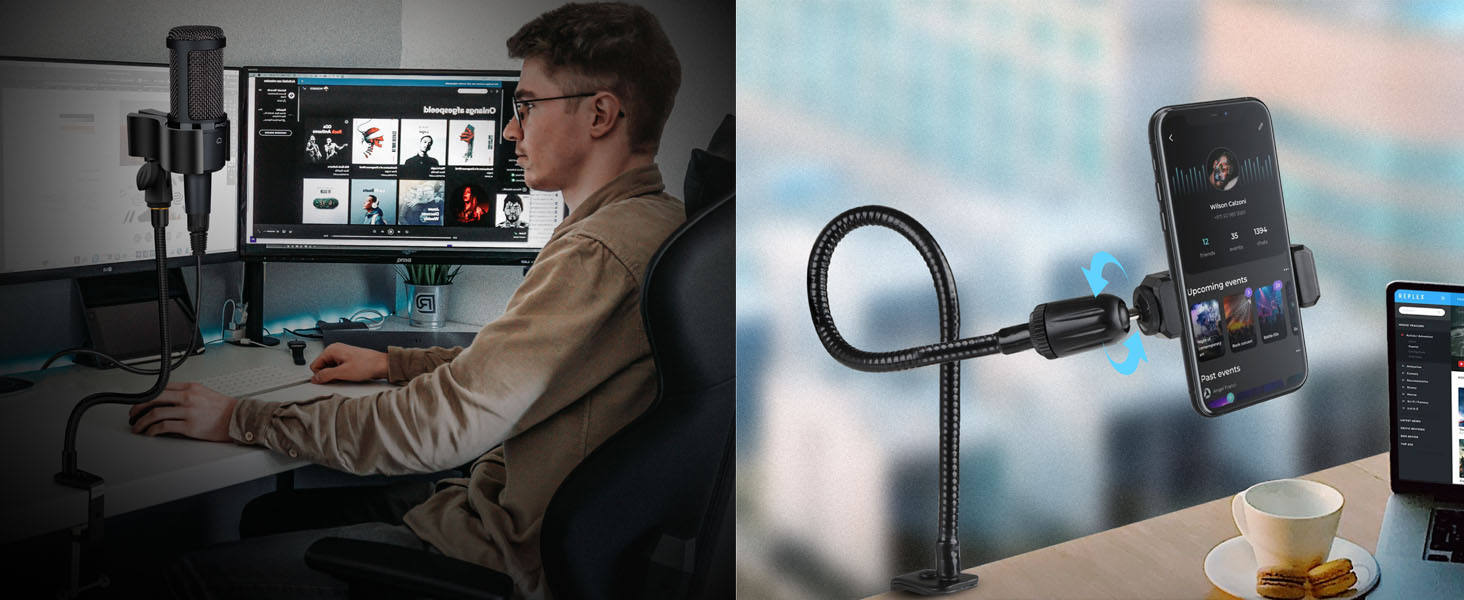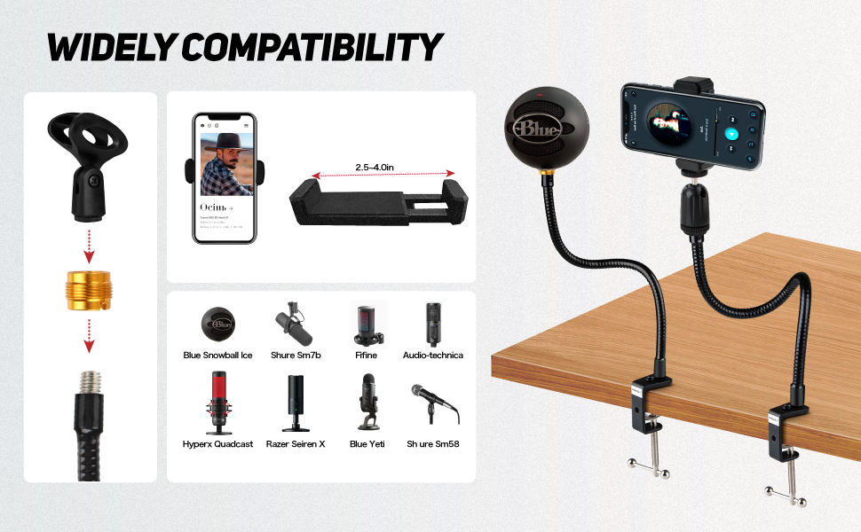 S-R02 Desktop Microphone Stand Flexible Gooseneck Universal 3/8 "5/8" Metal Screw Adapter Compatible with S h R E Other