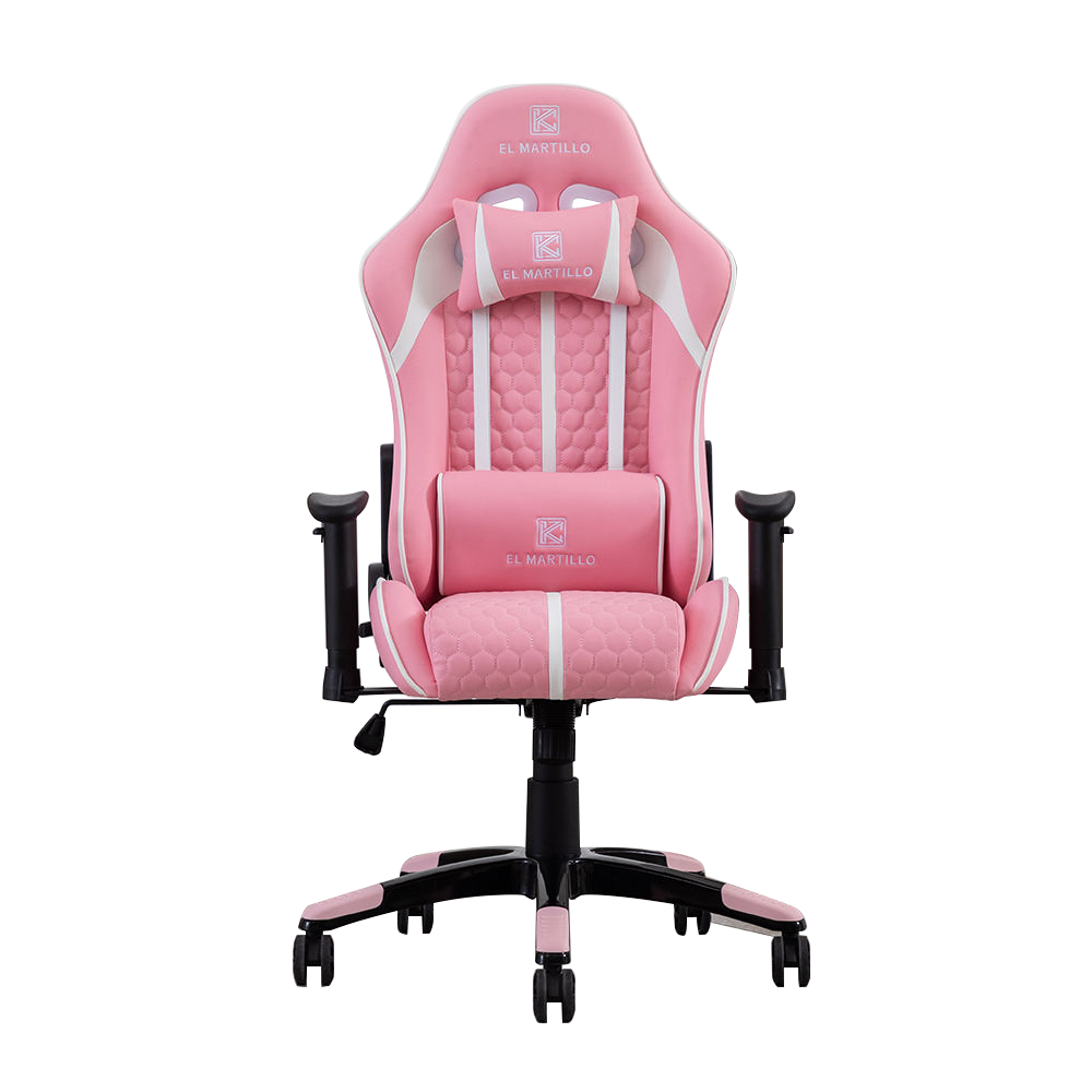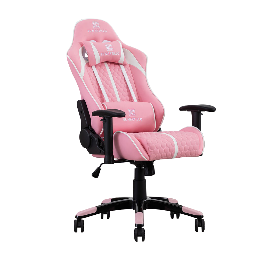 Pink gaming chair with 90-118 degree angle adjustment for girls' gaming chair