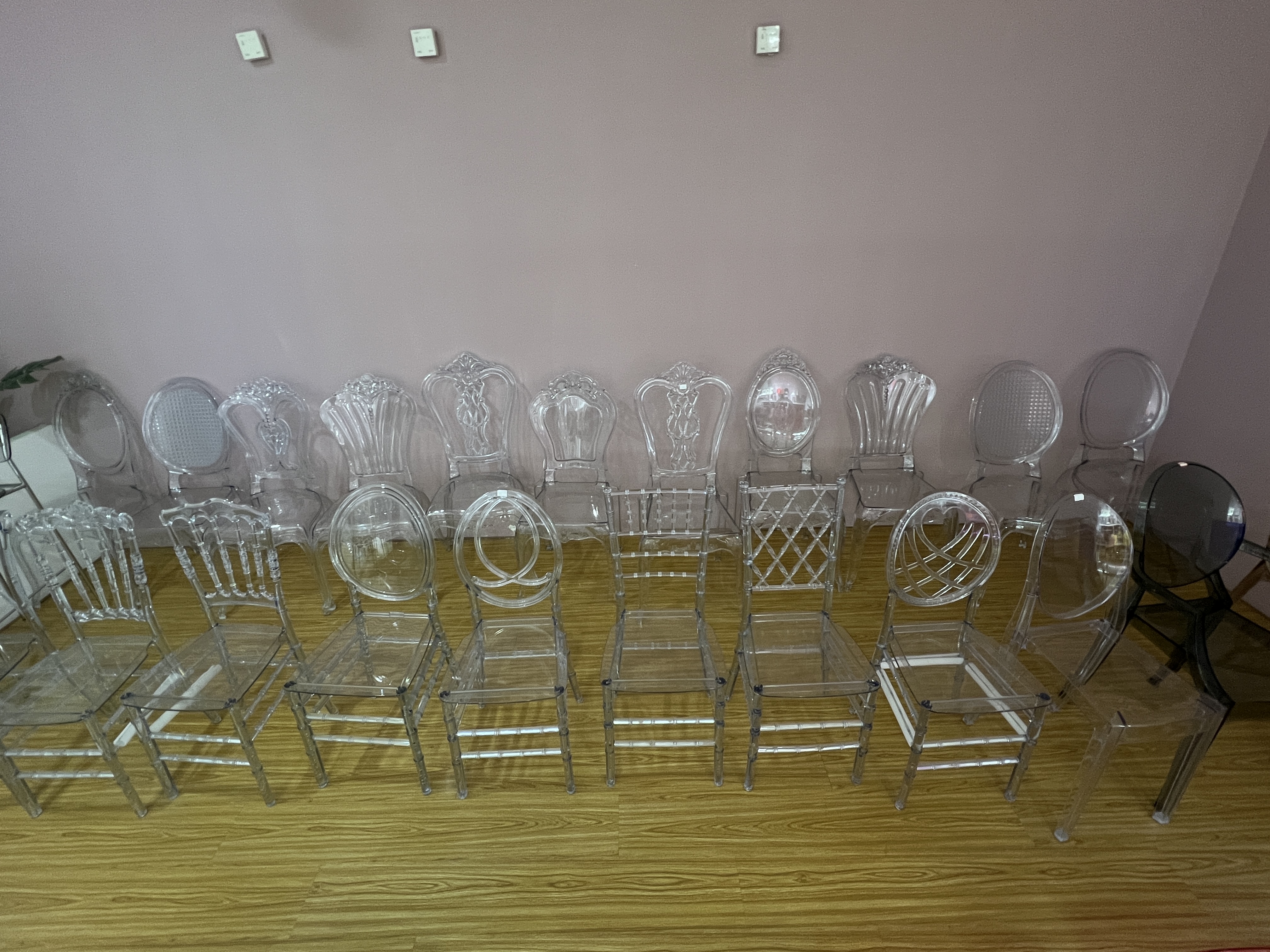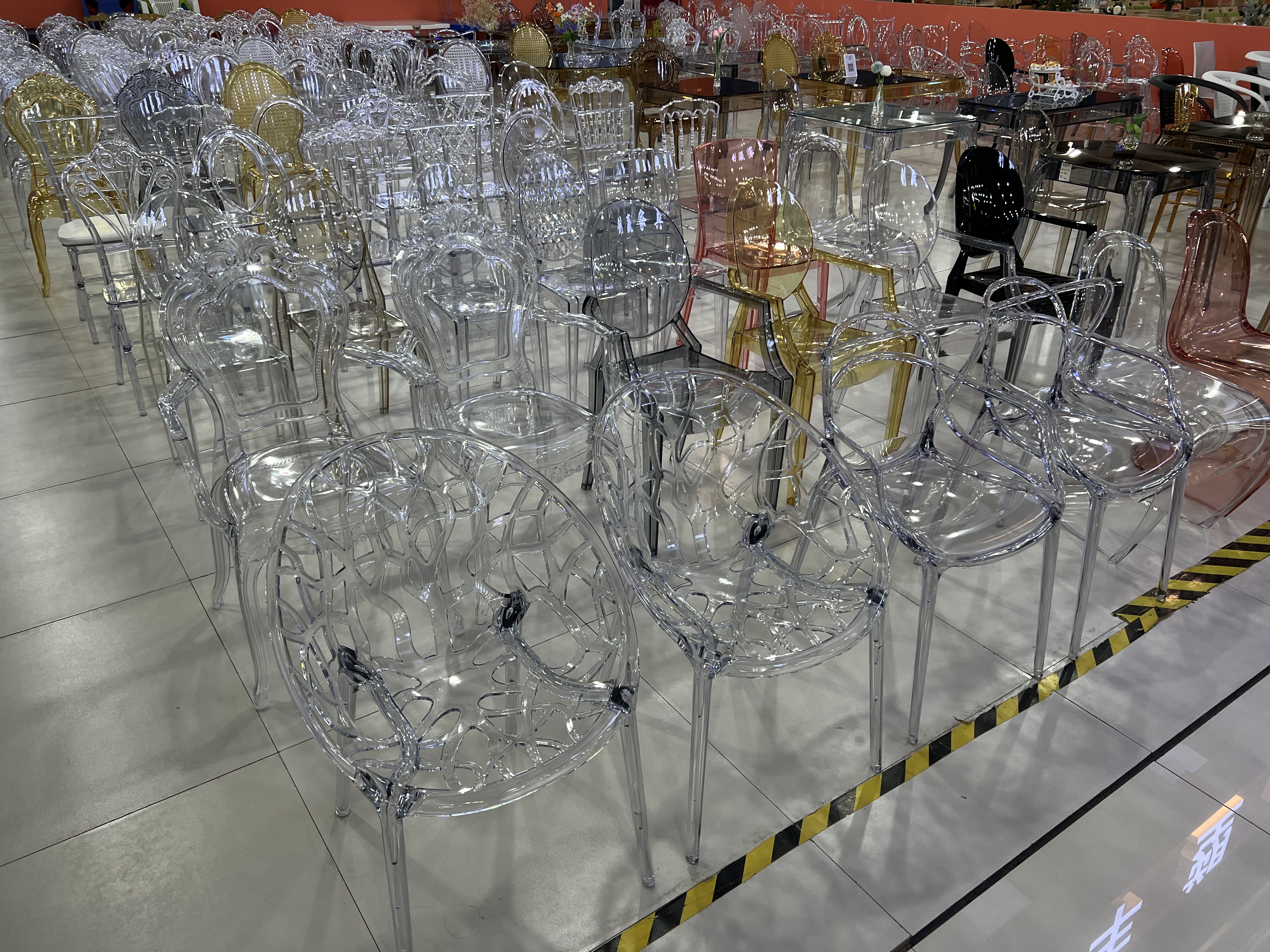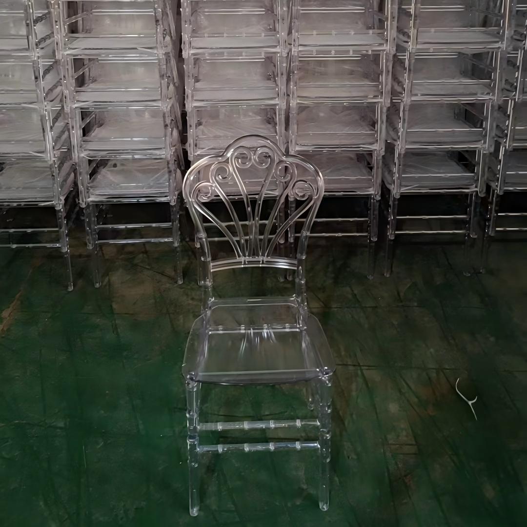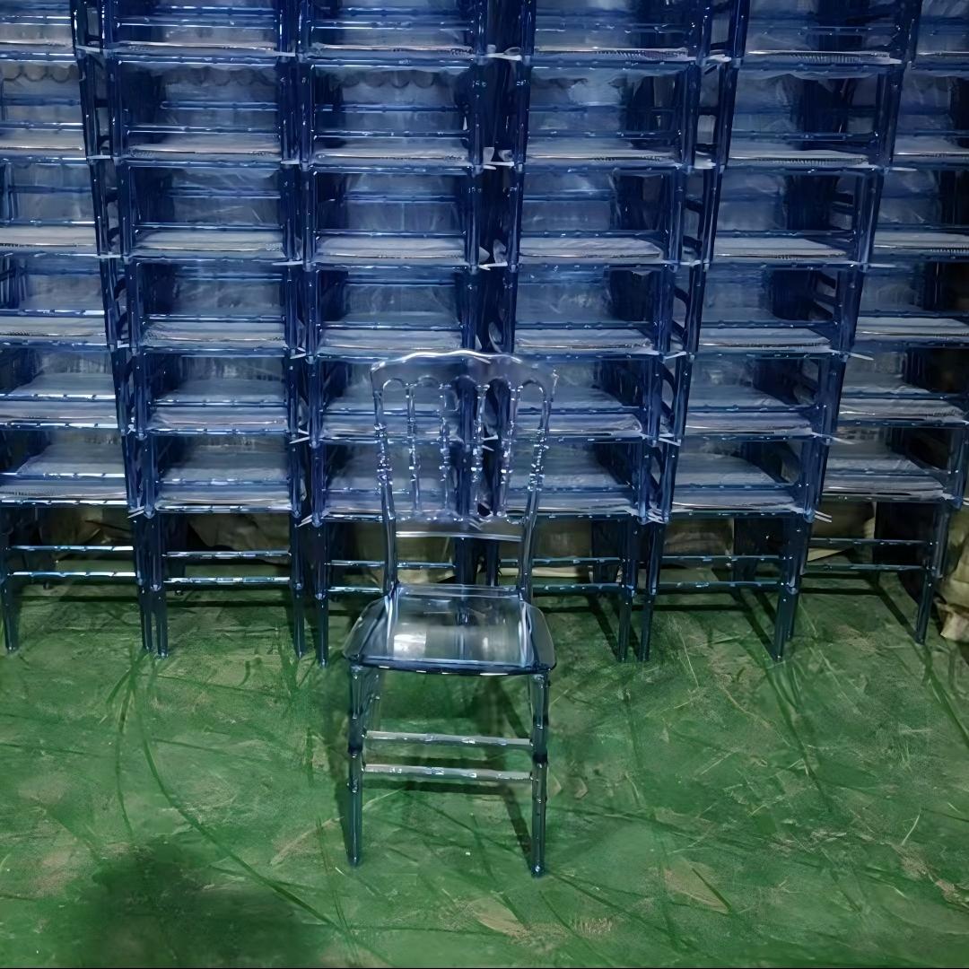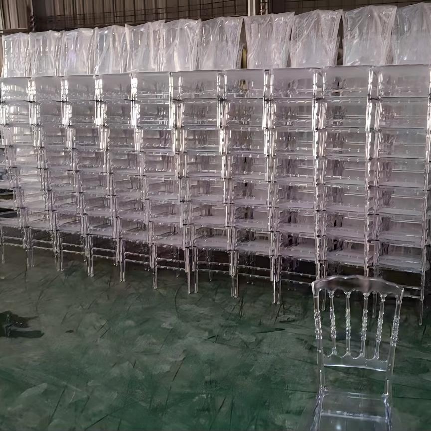 Hot selling transparent resin Chiavari chairs, white plastic acrylic wedding chairs, wholesale Phoenix Napoleon chair factory