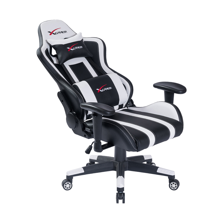 Low cost customized comfortable ergonomic synthetic leather rotating reclining steel frame gaming chair