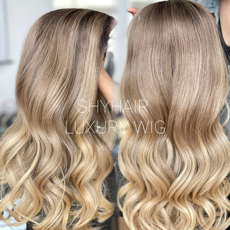 Transparent high-definition lace wig for baby hair with no glue, blonde wavy French lace, 150% density, 22 inches