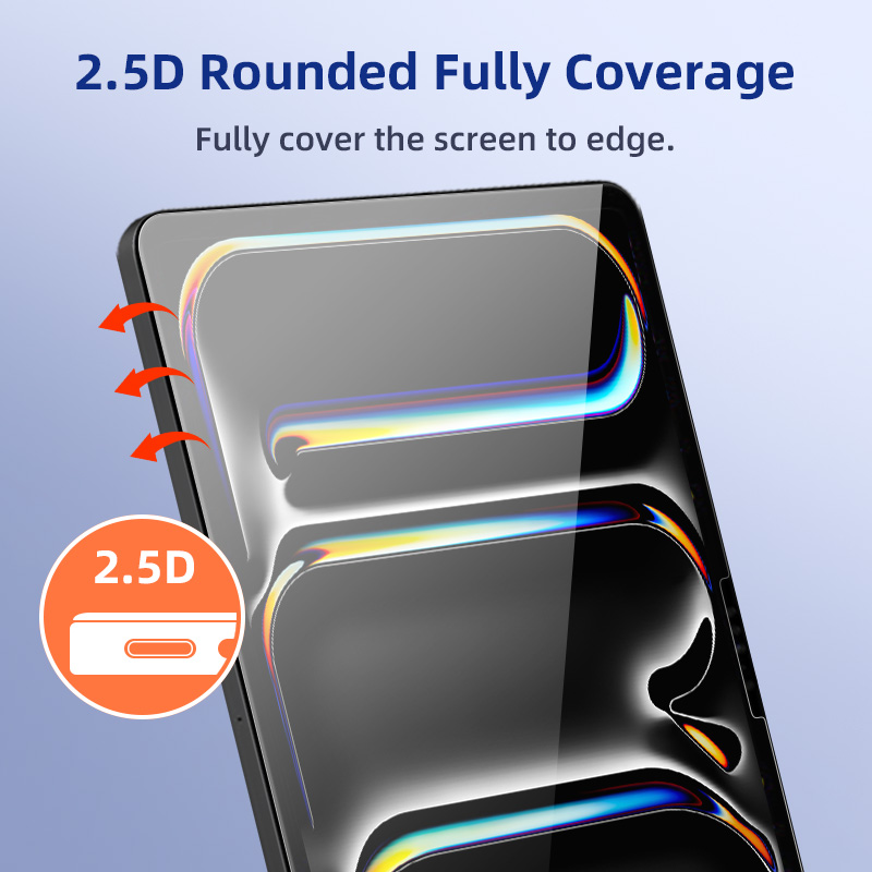 Easy to install tempered glass screen protector, compatible with protective case, suitable for iPad Pro/Air 11/13 inch 2024 M2/M3/M4/M5 chips