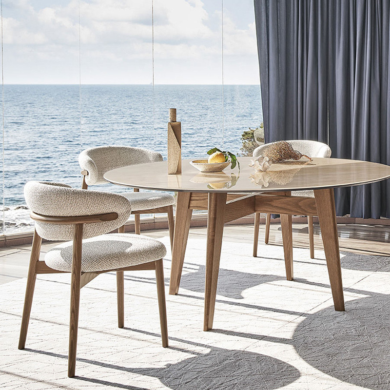 Nordic modern minimalist solid wood dining chair with backrest design fabric, suitable for use in family living rooms and hotels