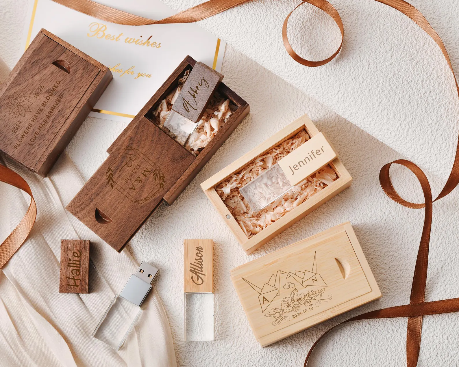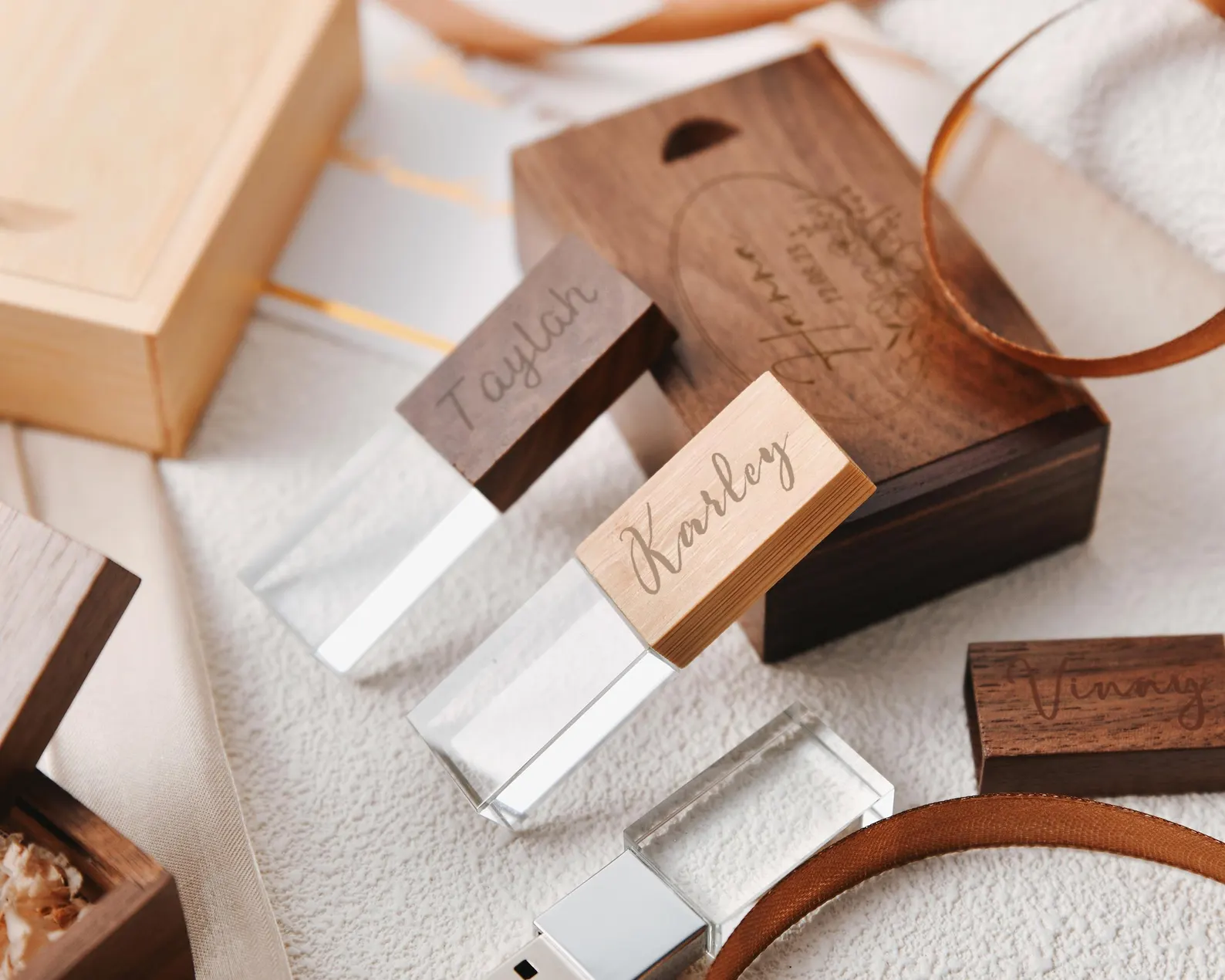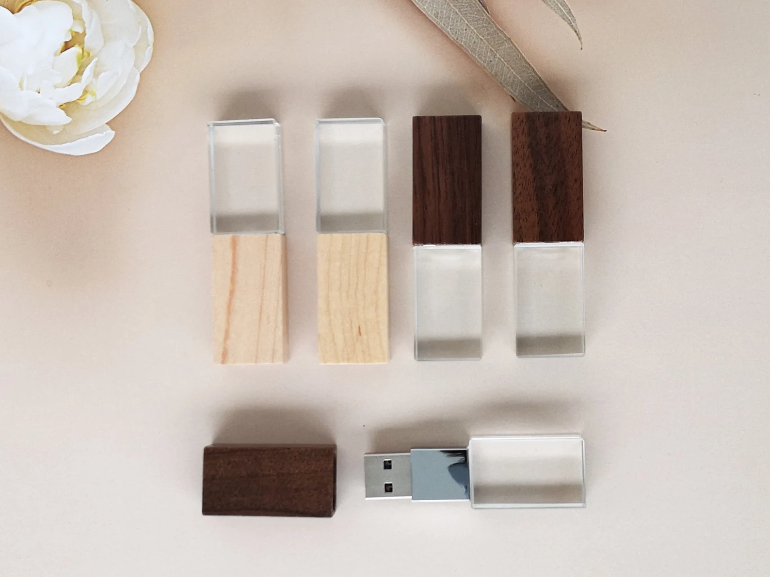 Gitra Crystal Pen Drive Wooden USB Disk Glass USB Disk Memory Stick 4GB 8GB 16GB 32GB 64GB Wedding Gift Customized Logo