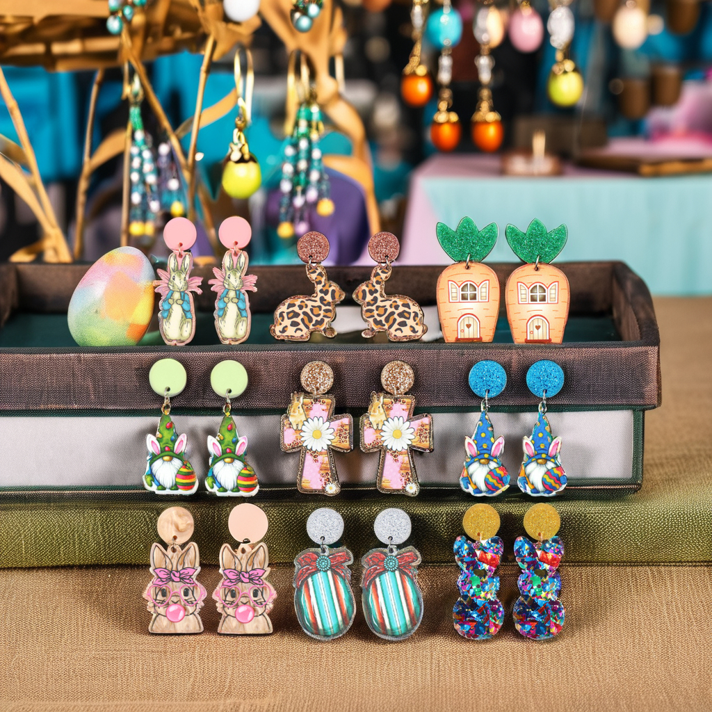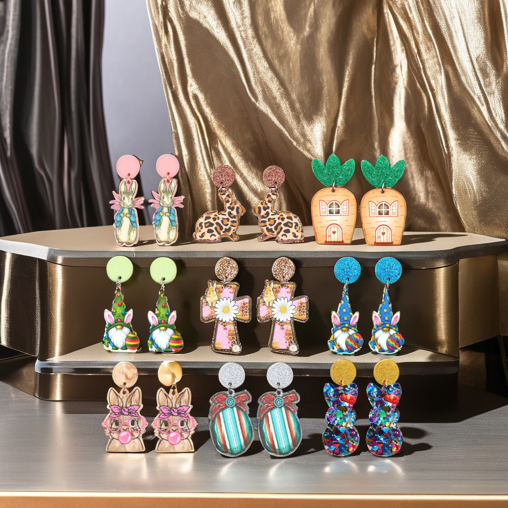 Easter Women's Trendy Acrylic Drop Earrings Titanium Plated for Party Occasions