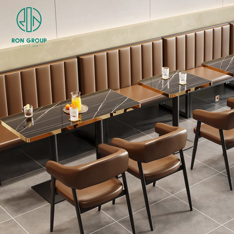Luxury Hotel Chinese Custom Square Coffee Shop Marble Commercial Coffee Shop Restaurant Furniture Stall Seating Table and Chair Set