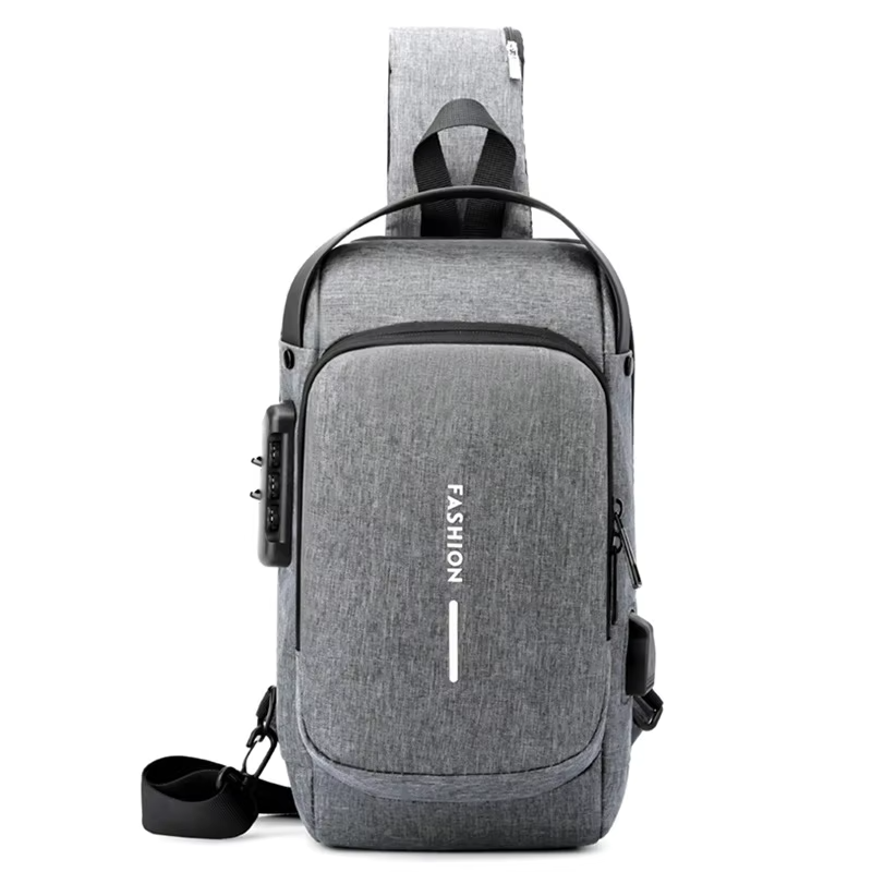 2025 hot selling waterproof men's shoulder chest motorcycle bicycle sling bag with lock customized logo USB drive anti-theft crossbody bag