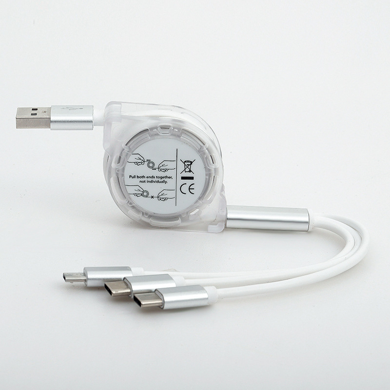 3-in-1 USB cable suitable for iPhone charger, 3A fast charging type - C 3-in-1 extendable USB cable suitable for Android phones