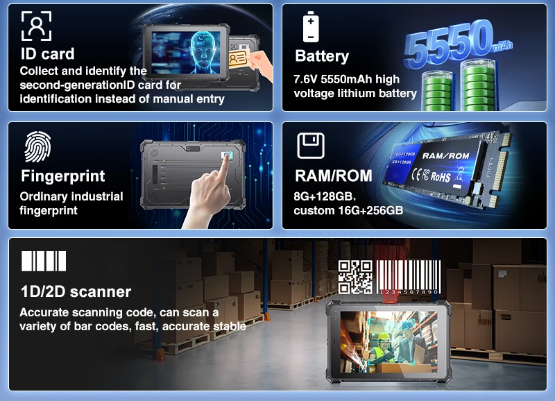 Cenava 10.1 Inch Rugged Win 11 Tablet Pc 2D Barcode Scanner ID Card with Industrial Fingerprint