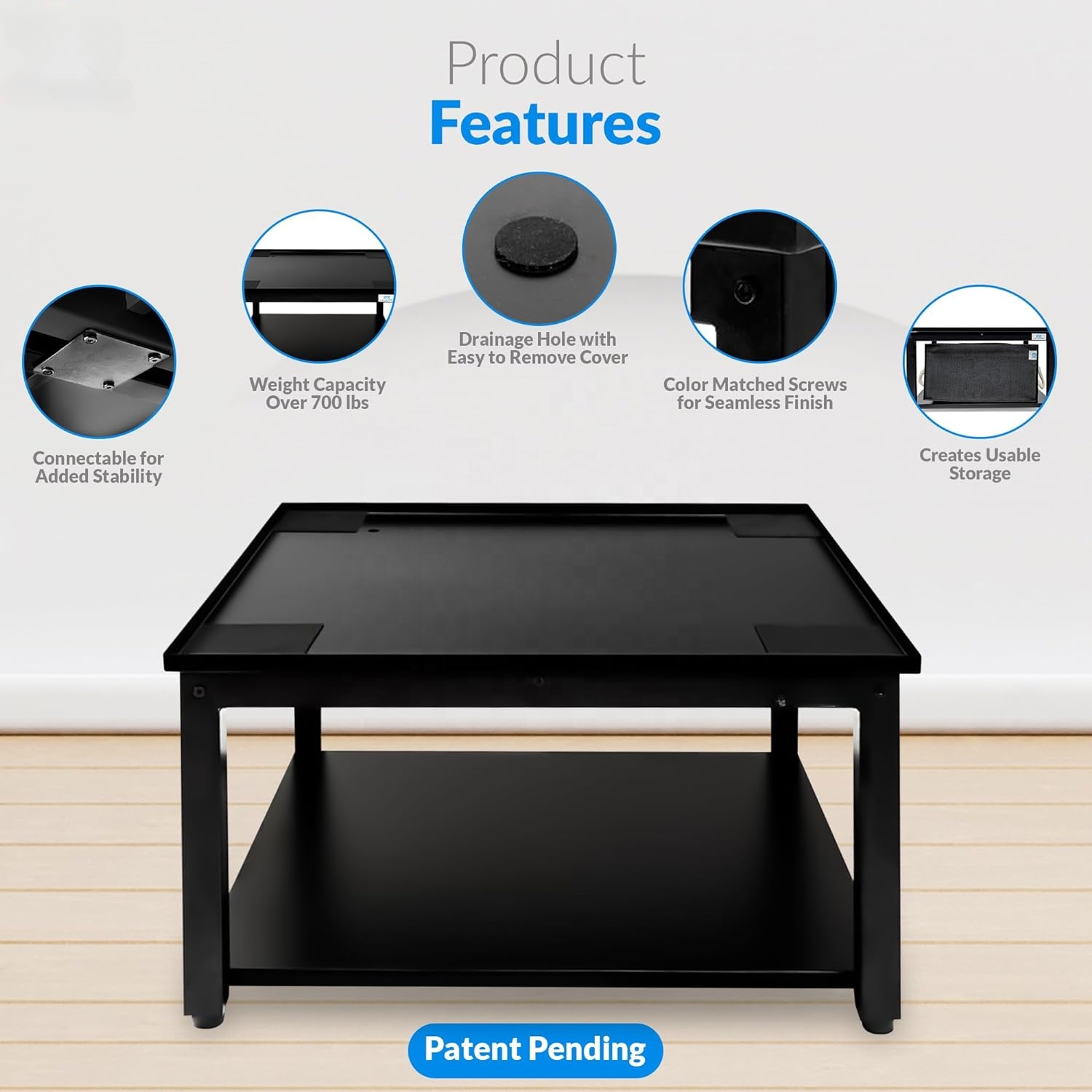 Black metal modern universal 16 inch drain pan hose adjustable foot pad bracket 28 inch base, suitable for bathroom and hotel use