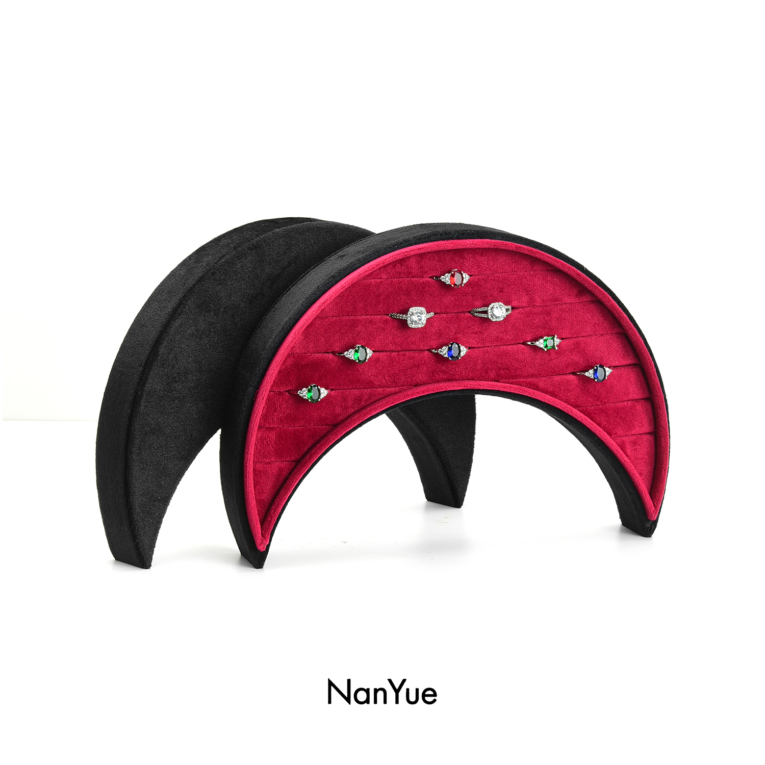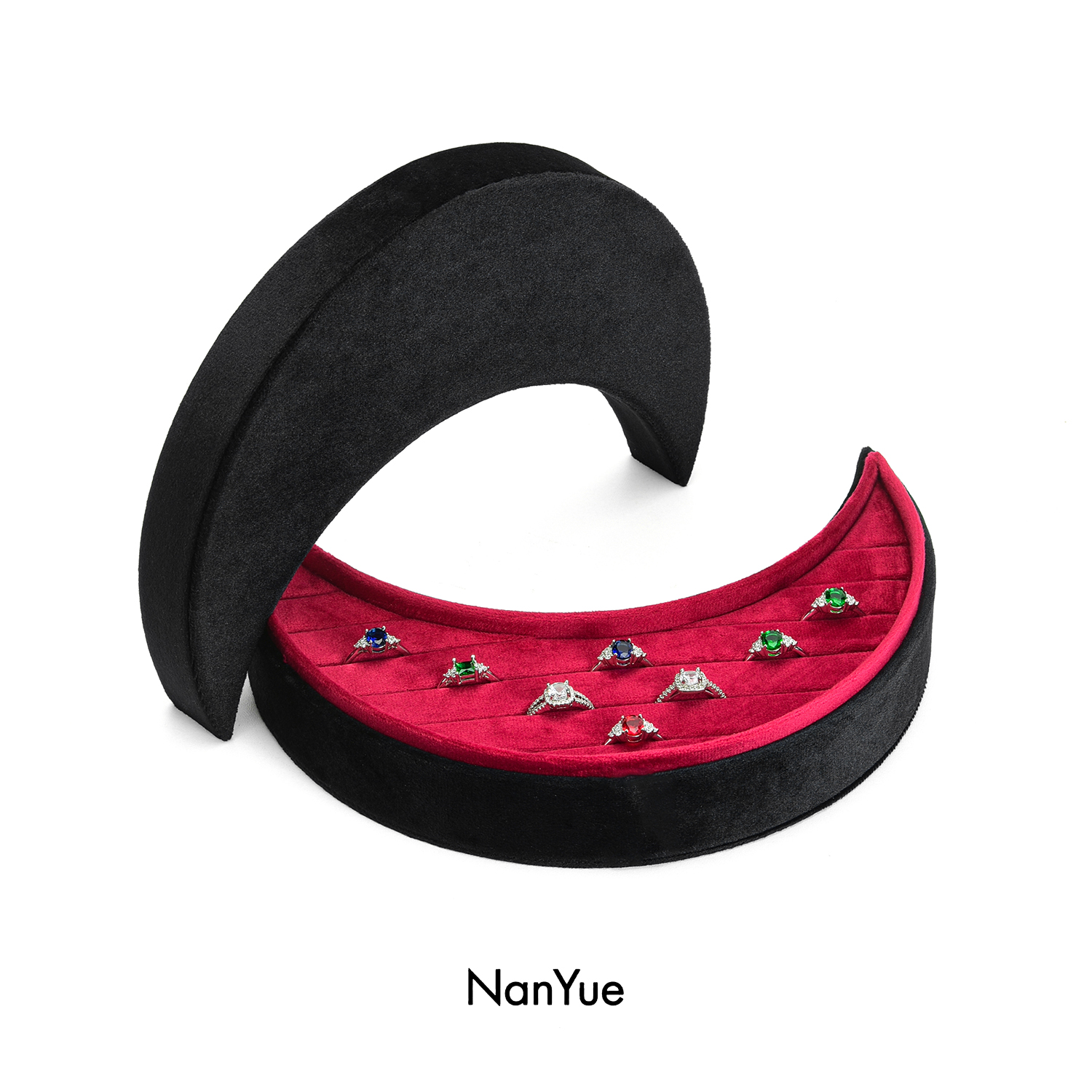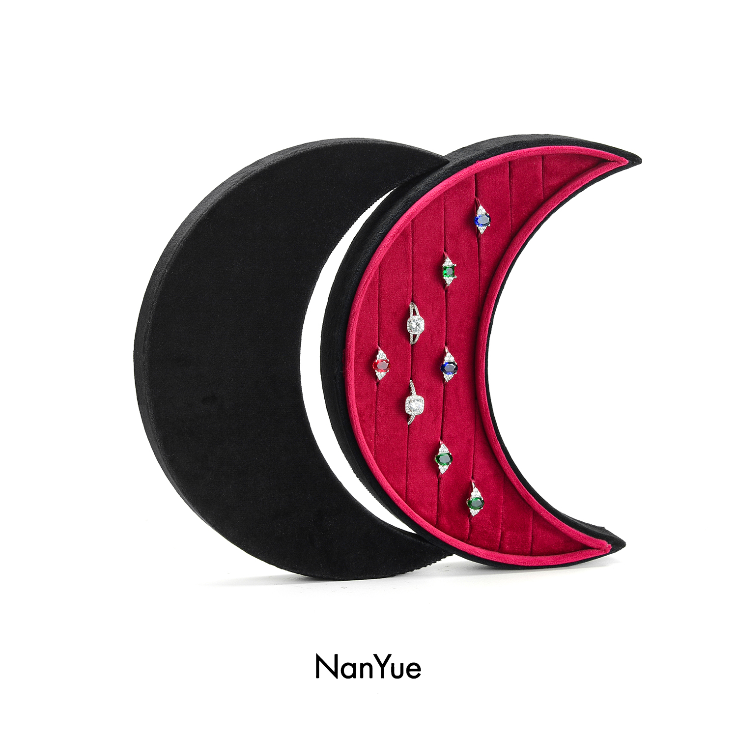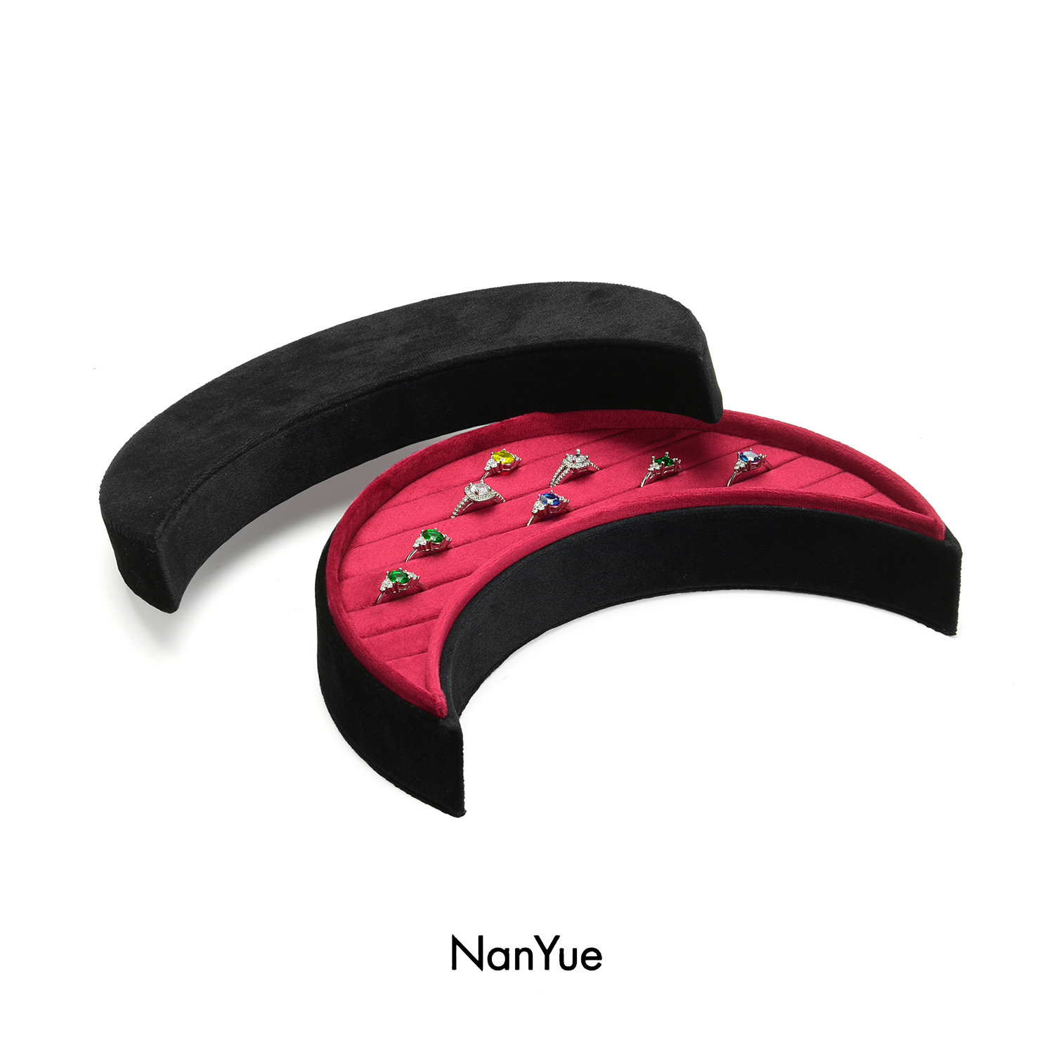 2025 New Arrival Customized Logo Moon shaped Velvet Jewelry Box Wholesale Ring Box Ring Tray Earrings Ring Storage Box