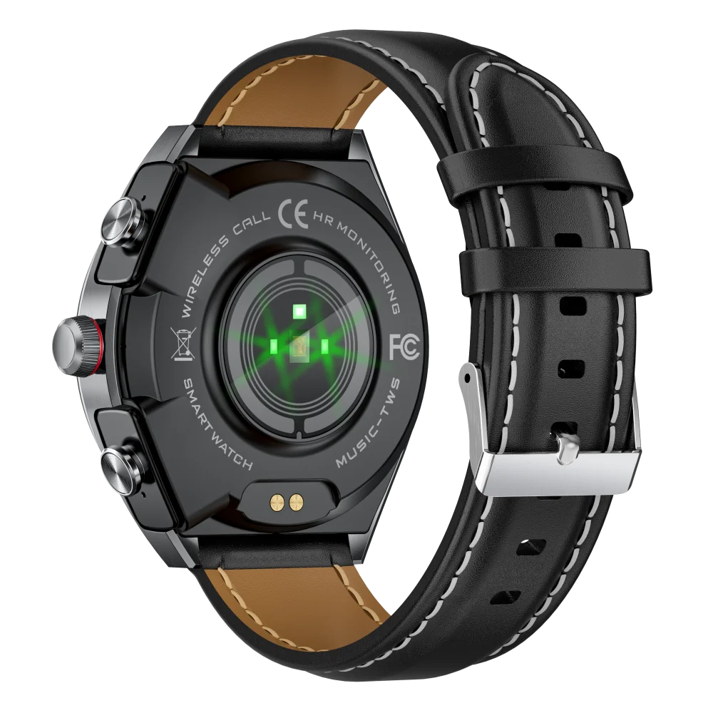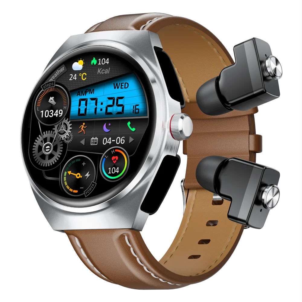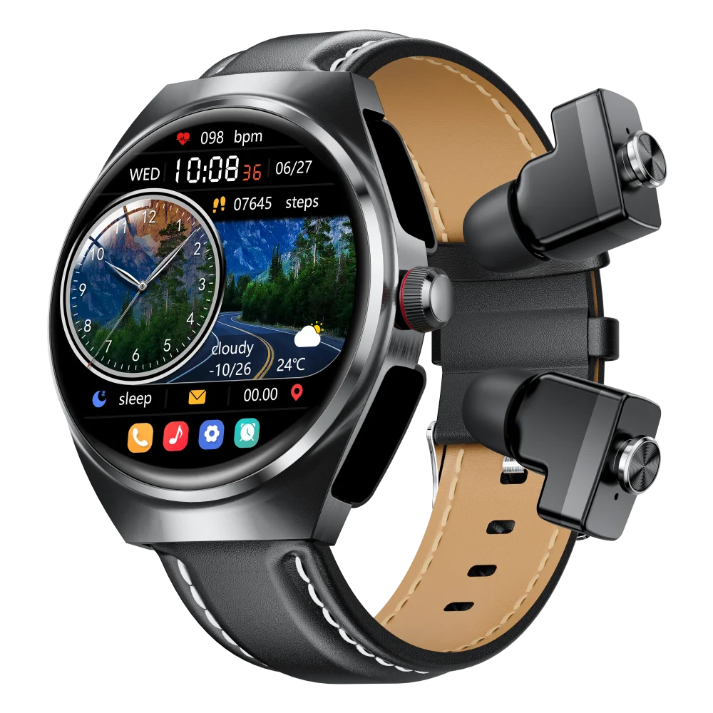 2025 Best New Smart Watch Leather Strap, 2-in-1 Earbuds and Fitness Tracker with Heart Rate Monitor