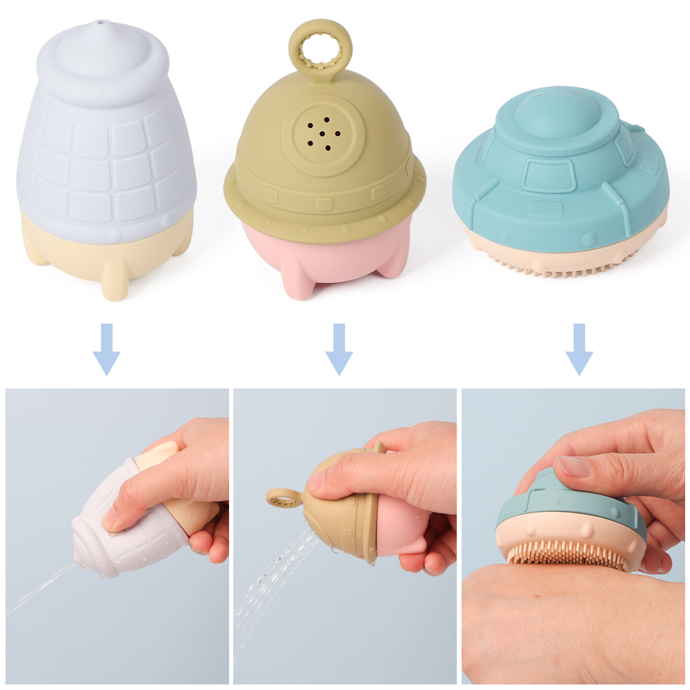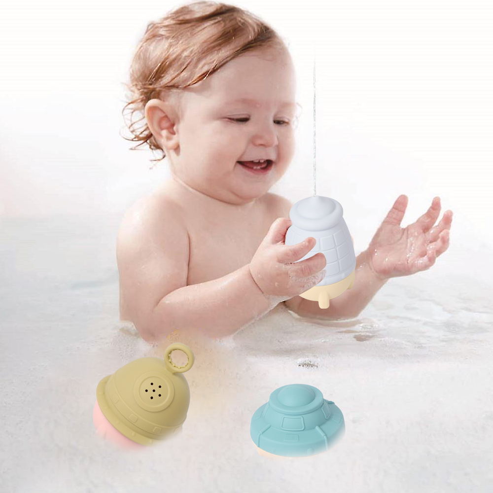Customized silicone baby bath toy set with water spray function, spacecraft/UFO/rocket shape, suitable for both men and women, suitable for infants and young children, made of food grade material