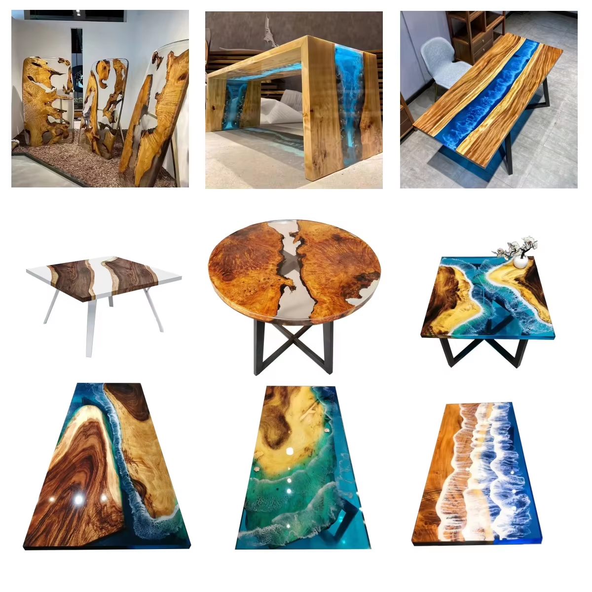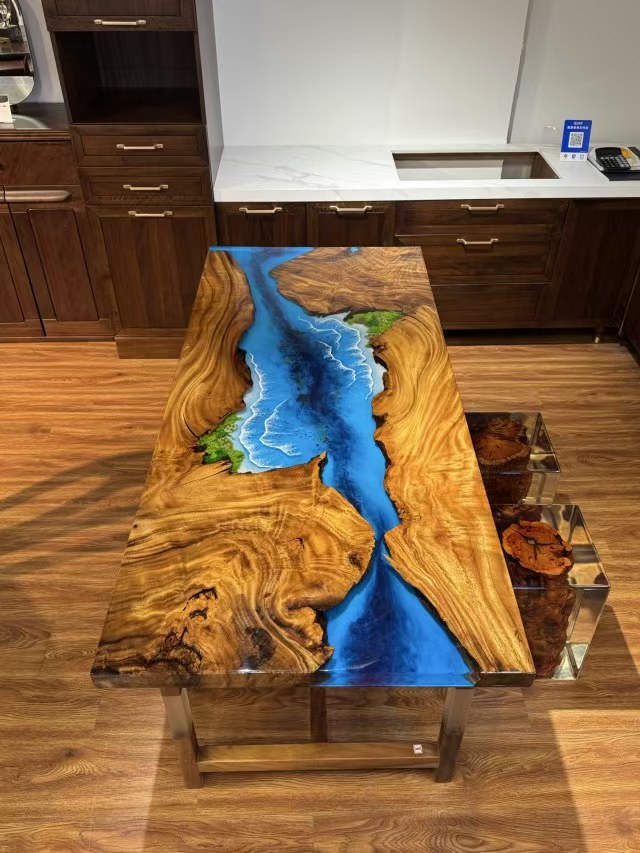 Hot selling resin epoxy desktop wood river office desk epoxy resin solid wood Qinghe dining table