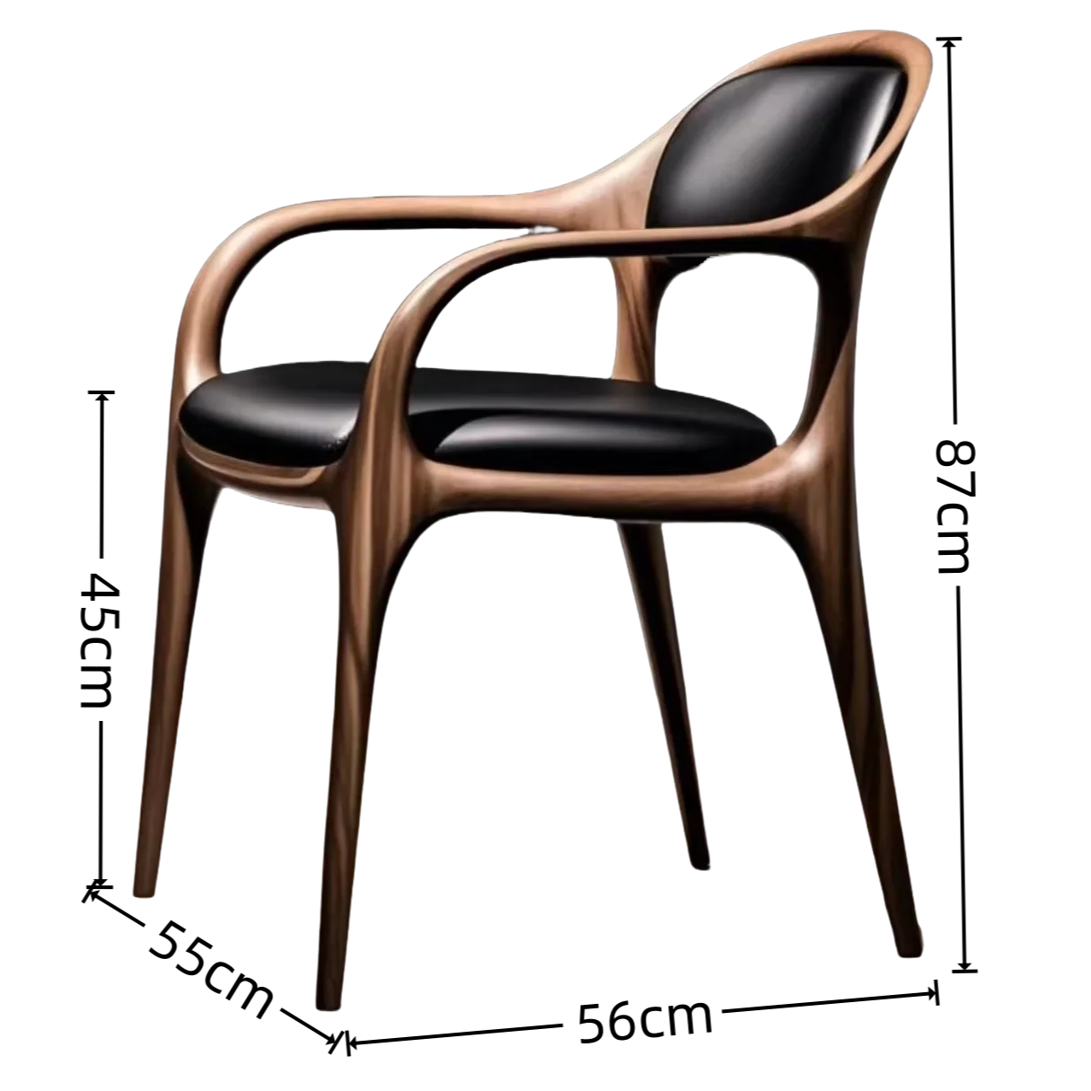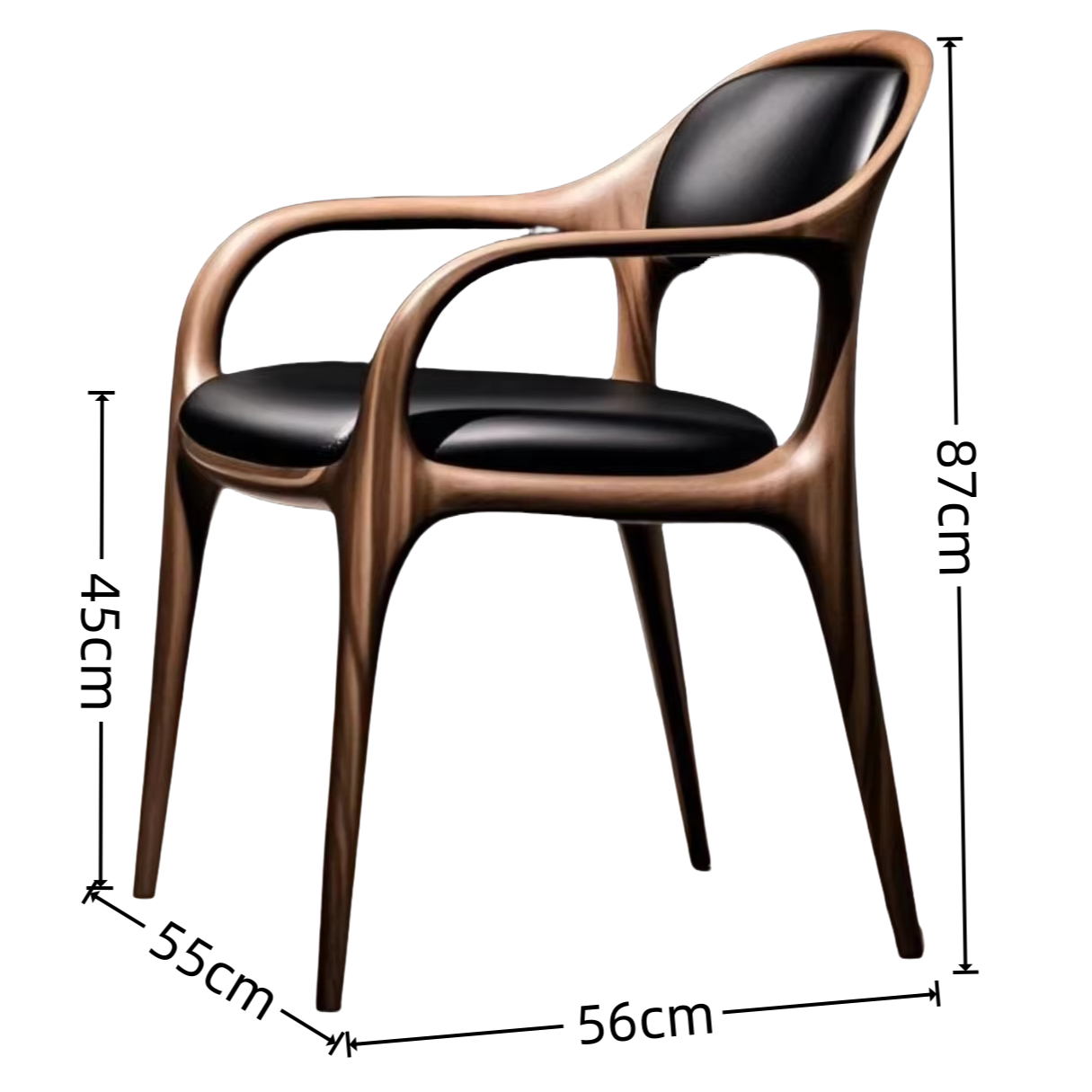 Nordic minimalist wooden armchair with solid walnut leather back for home use