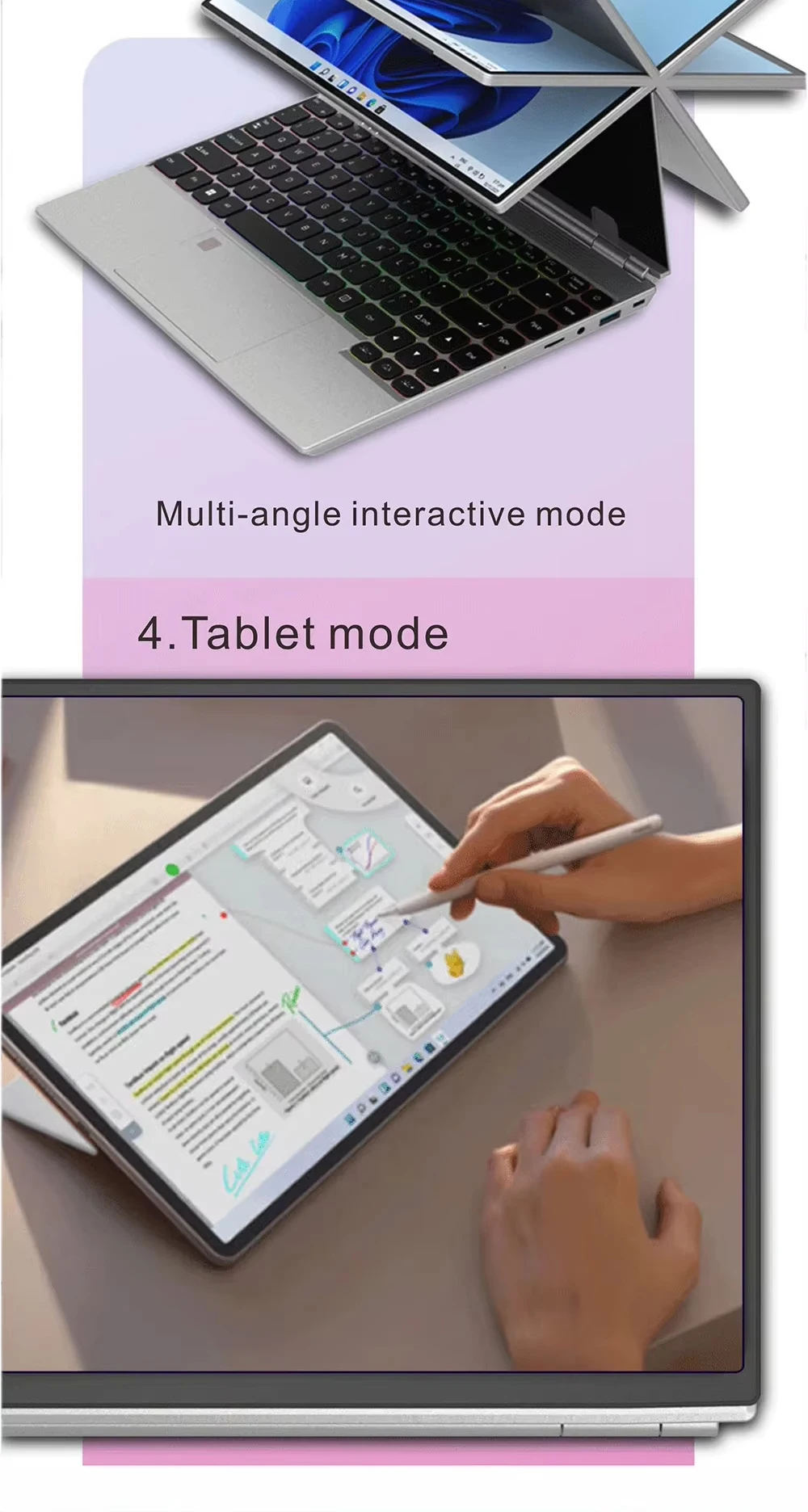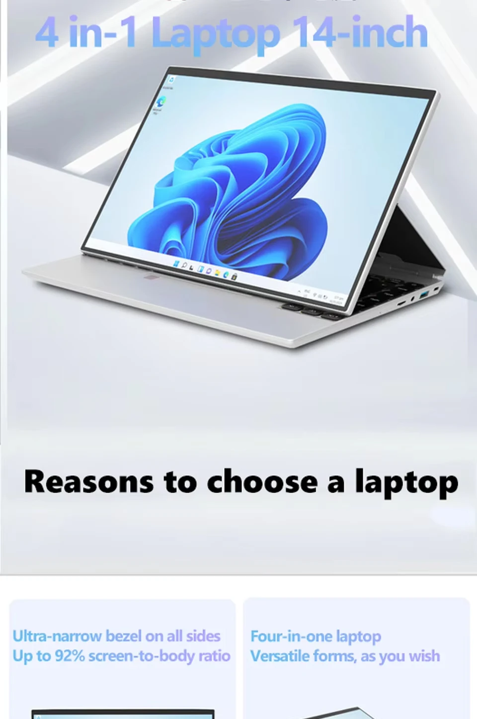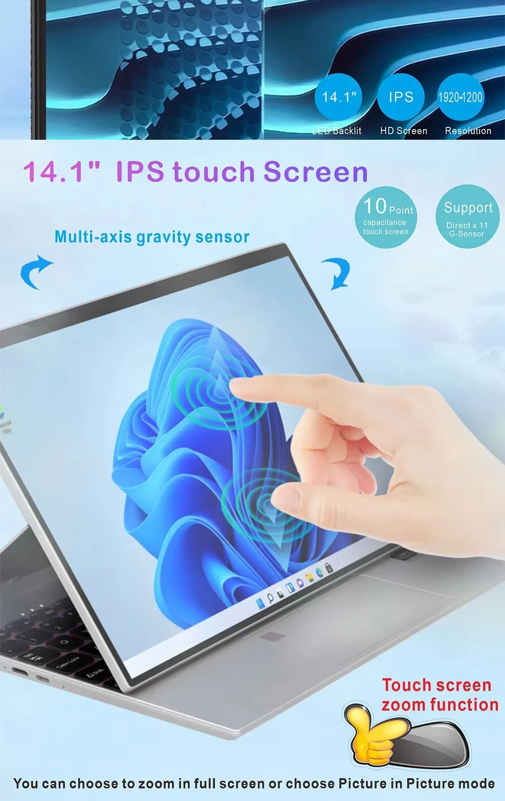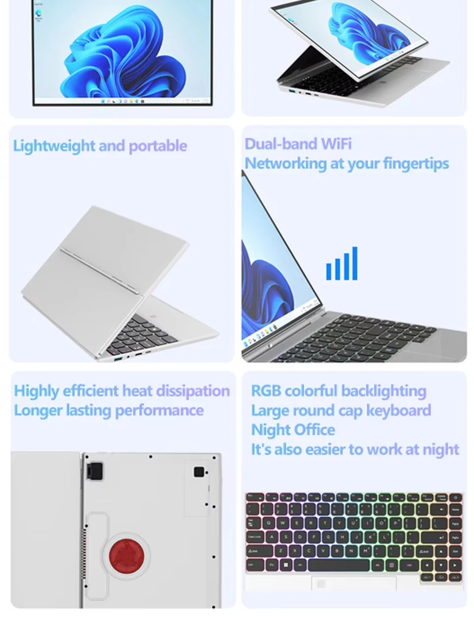 New 14-inch 4-in-1 Gaming Laptop 2K 1920x1200FHD Touch Screen RGB Seven-Color Backlight Keyboard Intel Processor Windows