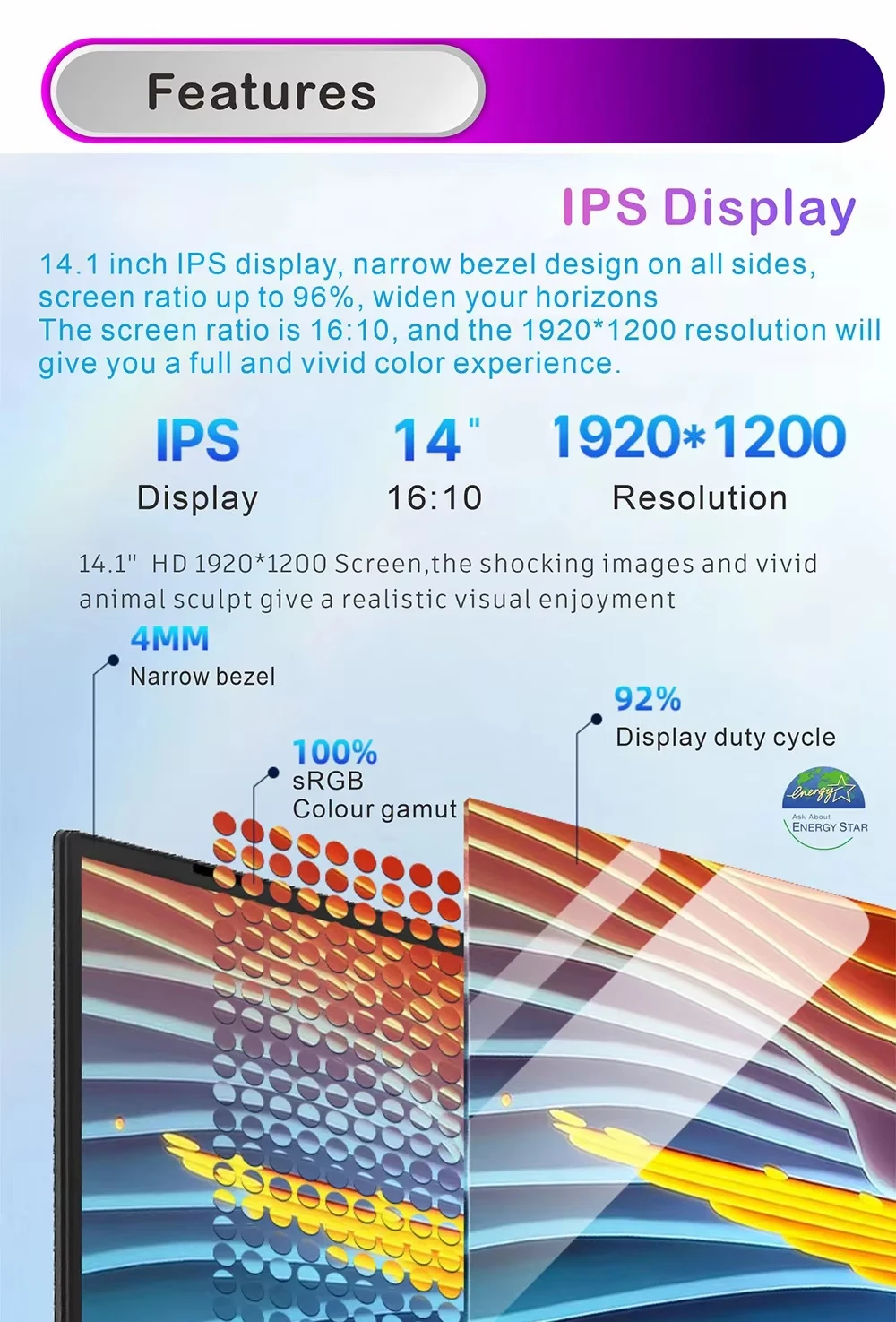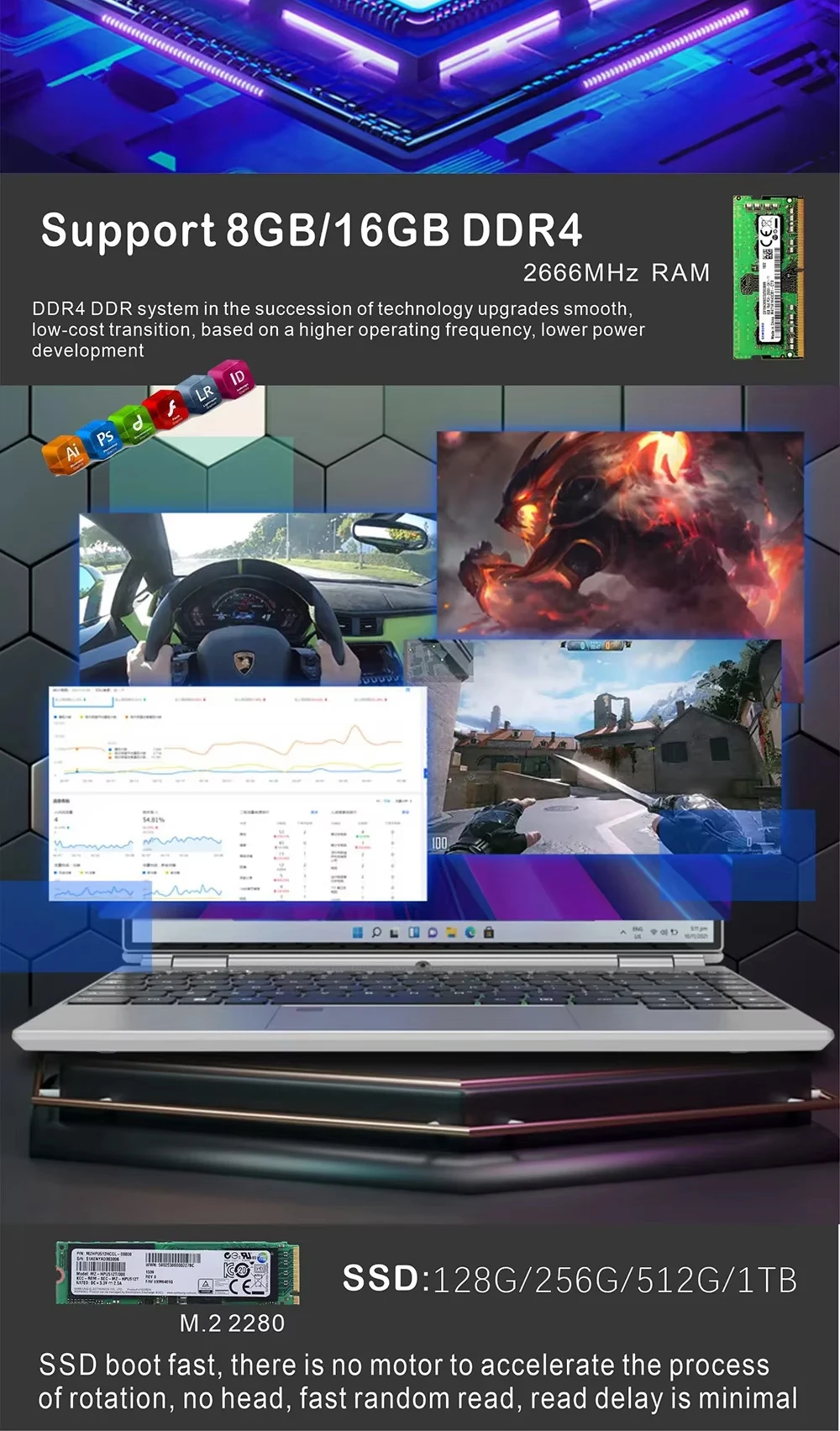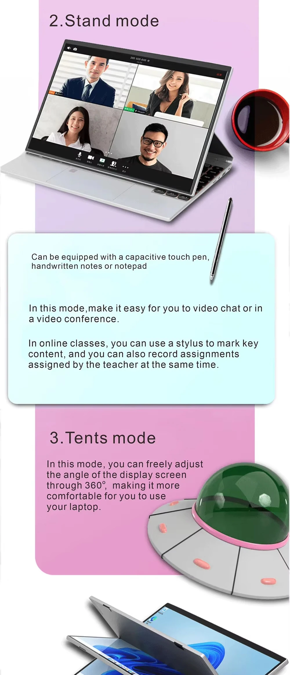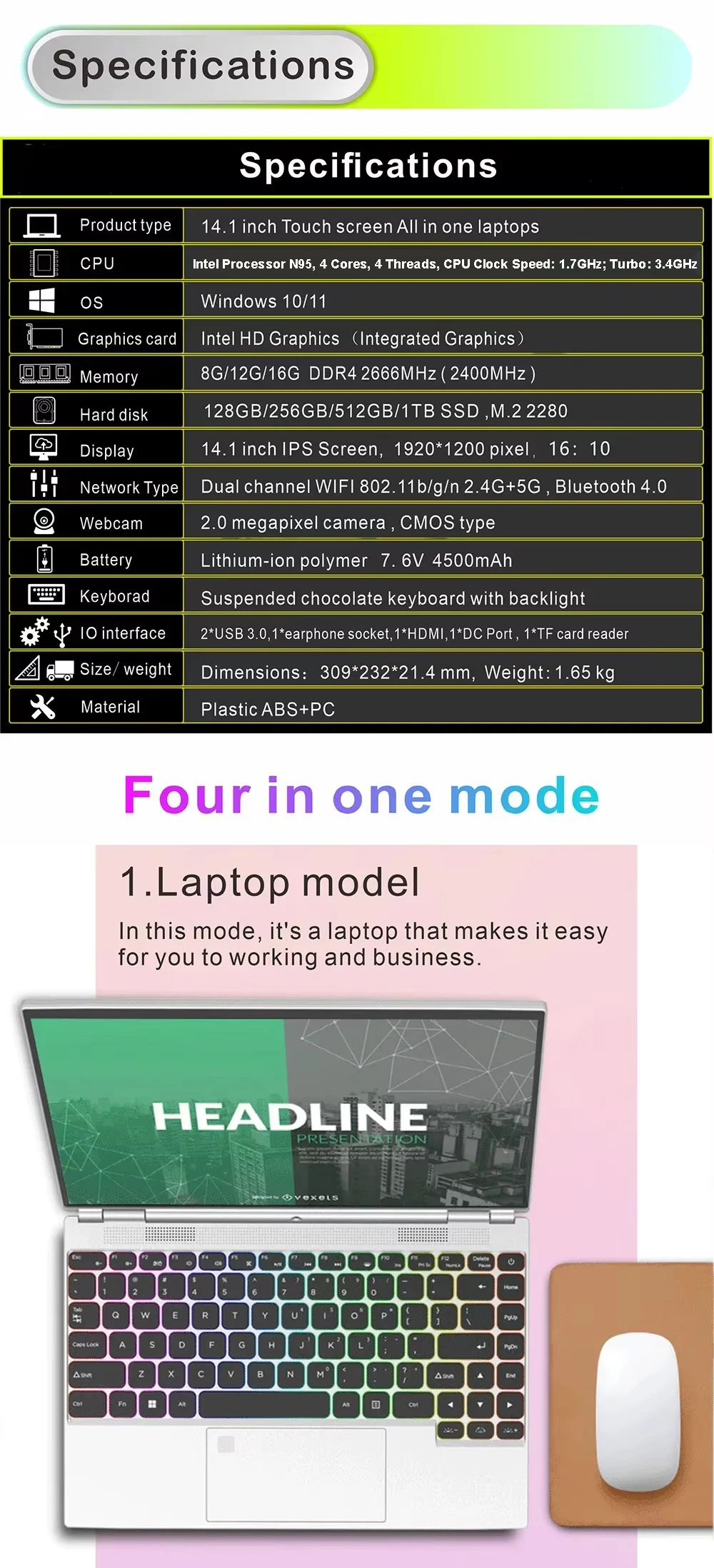 New 14-inch 4-in-1 Gaming Laptop 2K 1920x1200FHD Touch Screen RGB Seven-Color Backlight Keyboard Intel Processor Windows