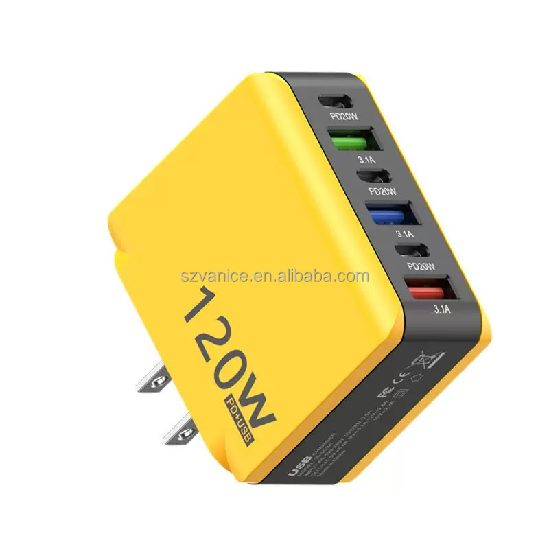 EU/US/UK plug 120W 3 USB+3 usb-c PD 6-port fast charger 120W USB Type-C multi port fast charging Xiaomi/Samsung/Huawei