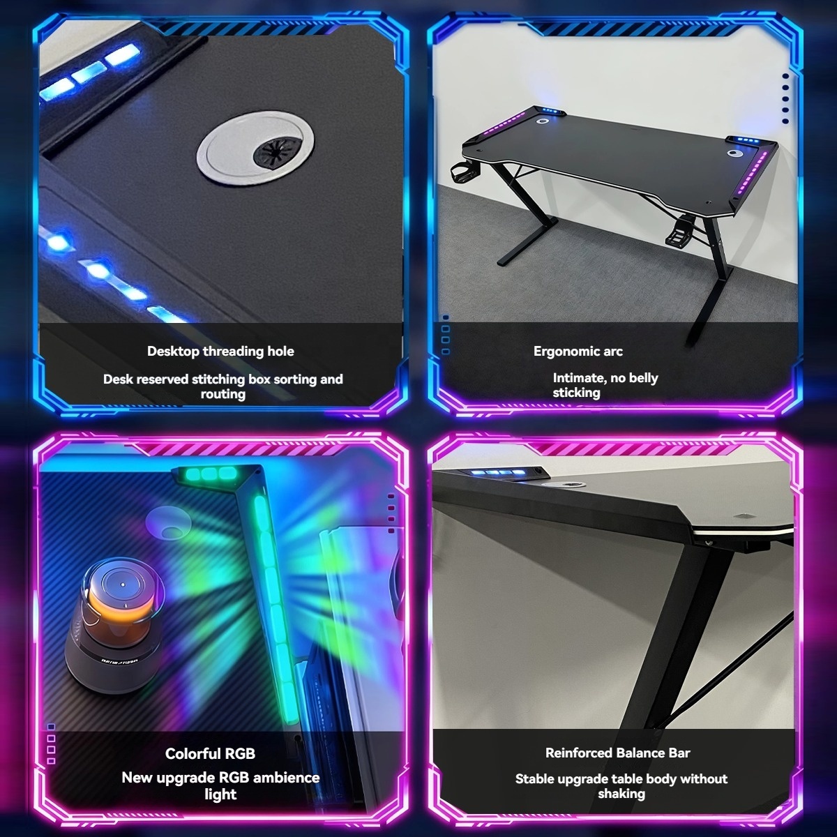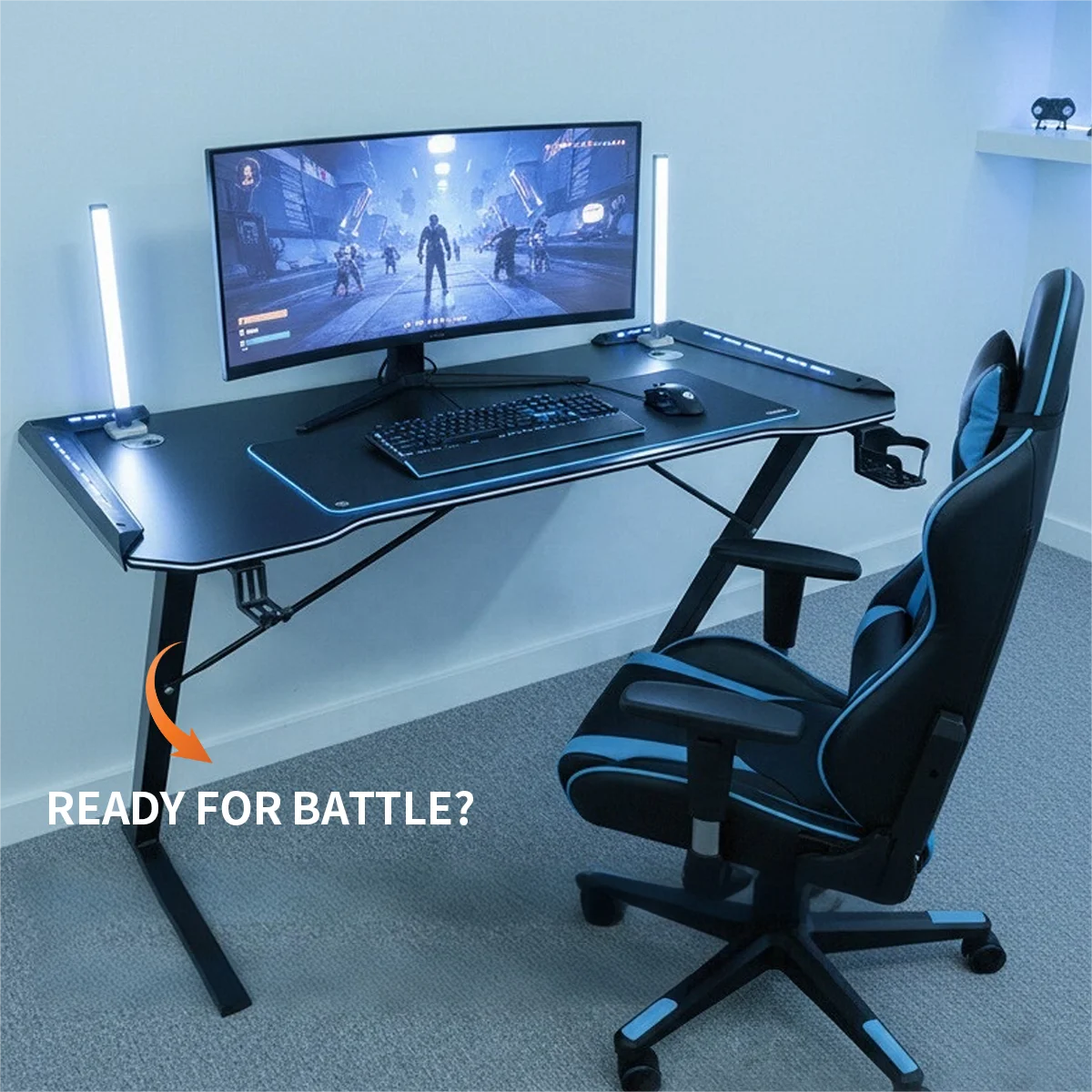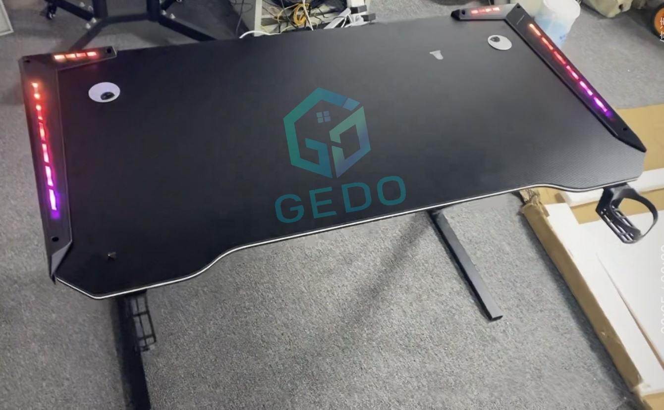 GEDO wholesale carbon fiber desktop Z-shaped computer desk with RGB cup holder and headphone stand, newly designed gaming table