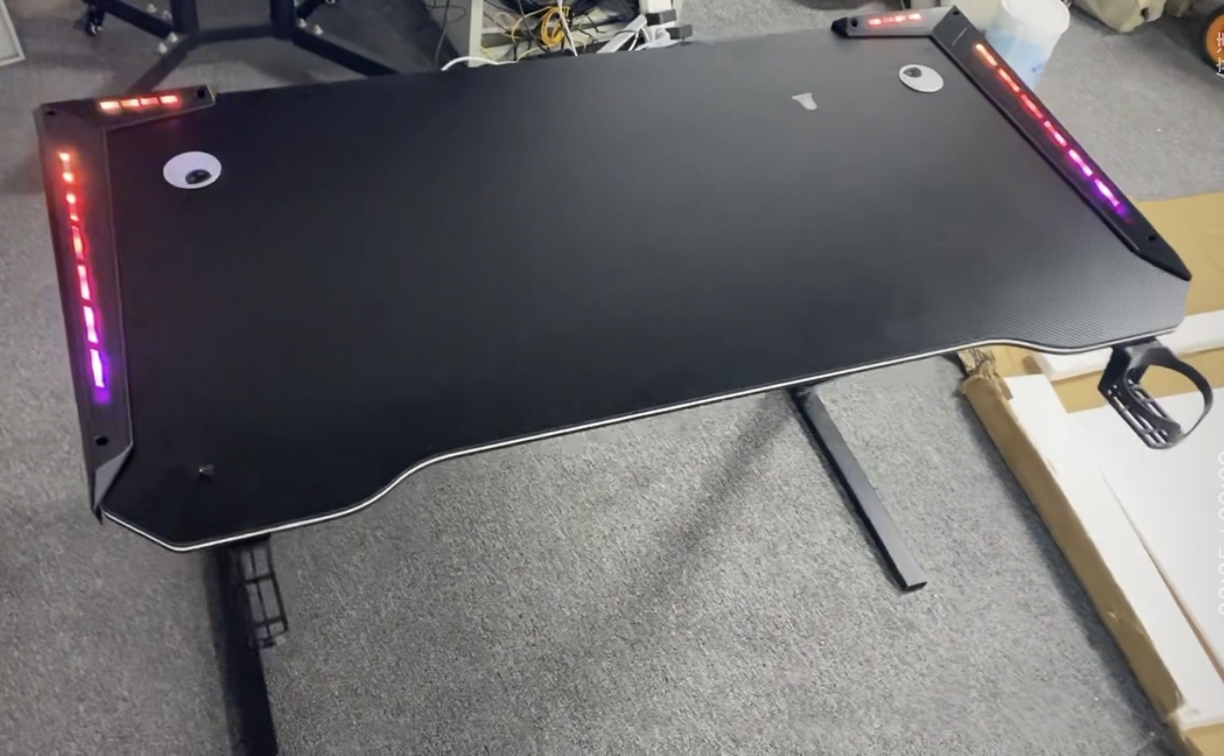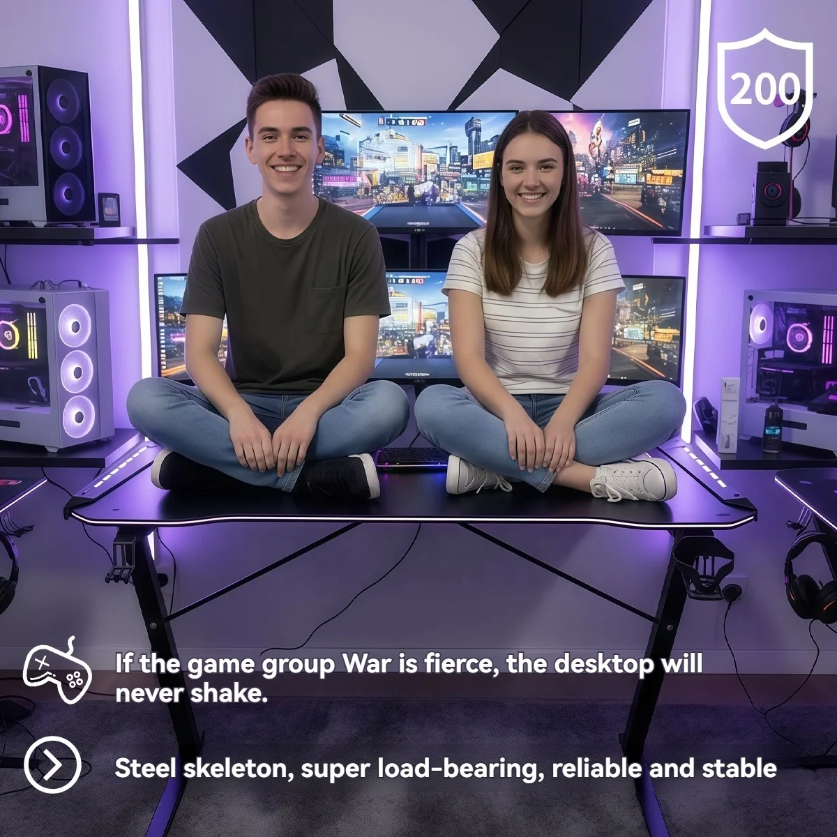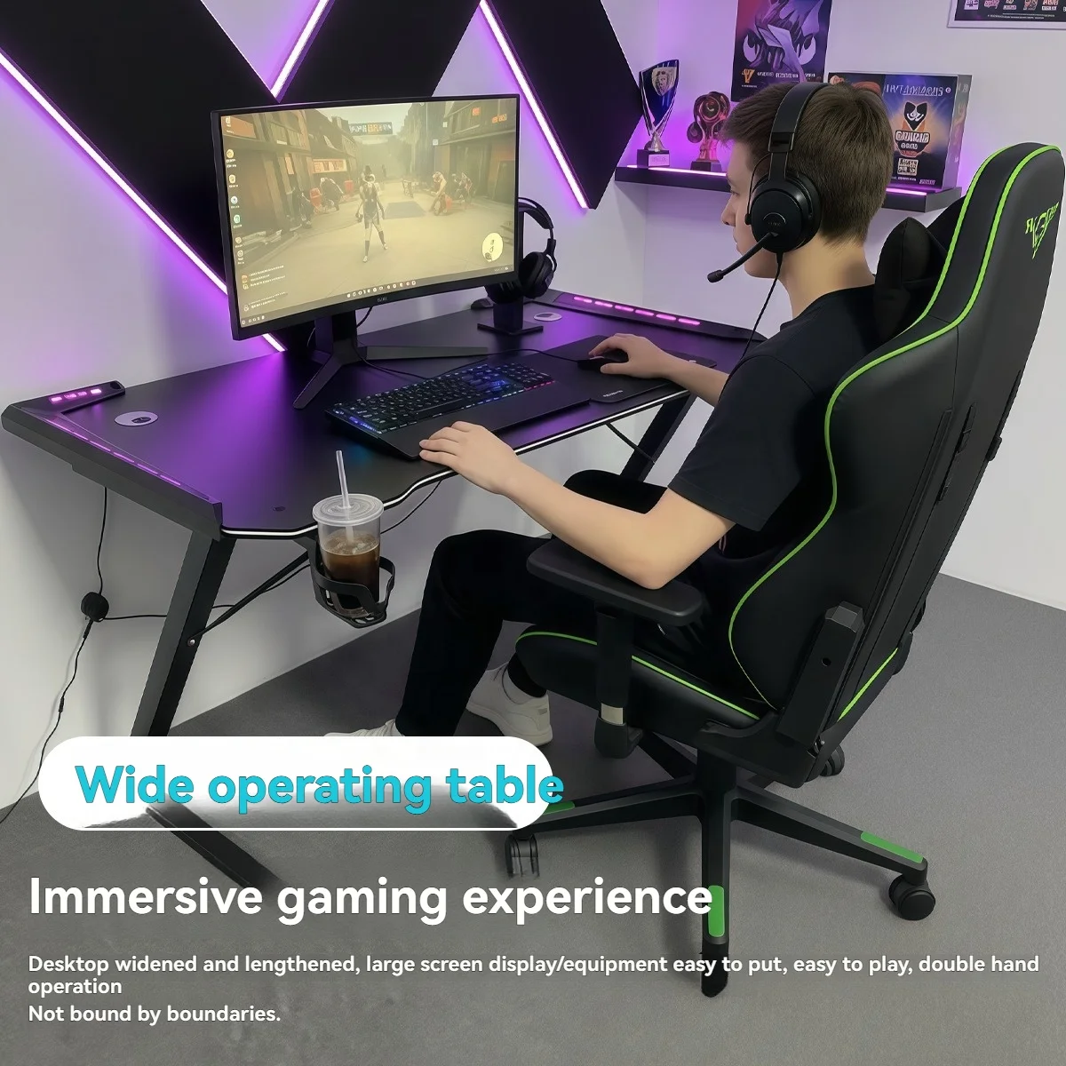 GEDO wholesale carbon fiber desktop Z-shaped computer desk with RGB cup holder and headphone stand, newly designed gaming table