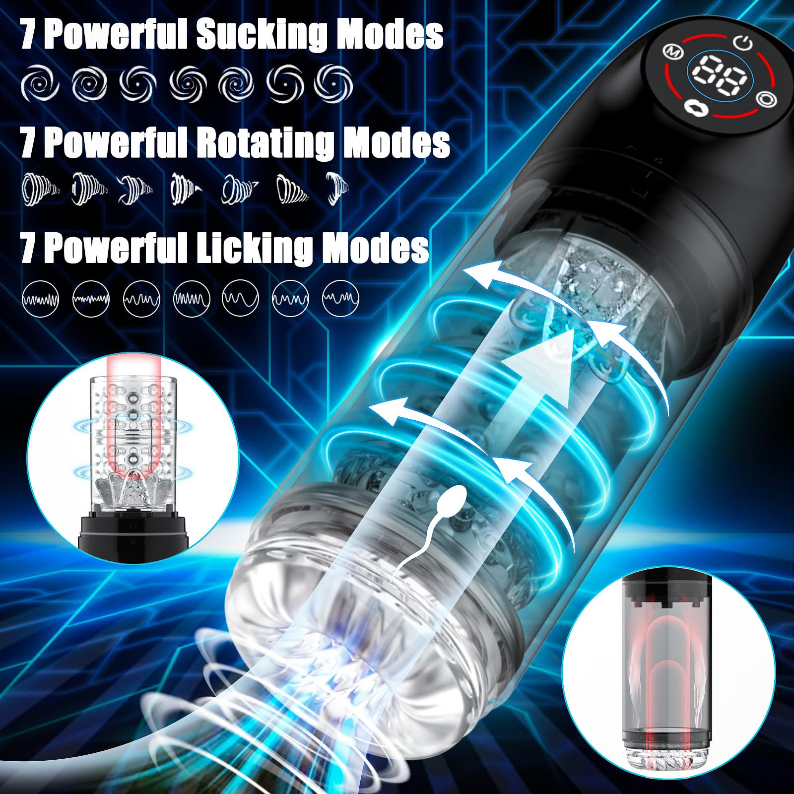 Upgraded PRO IPX7 Waterproof 7-speed Rotating Suction Massage Vacuum Penis Pump Automatic Suction Male Masturbation Cup