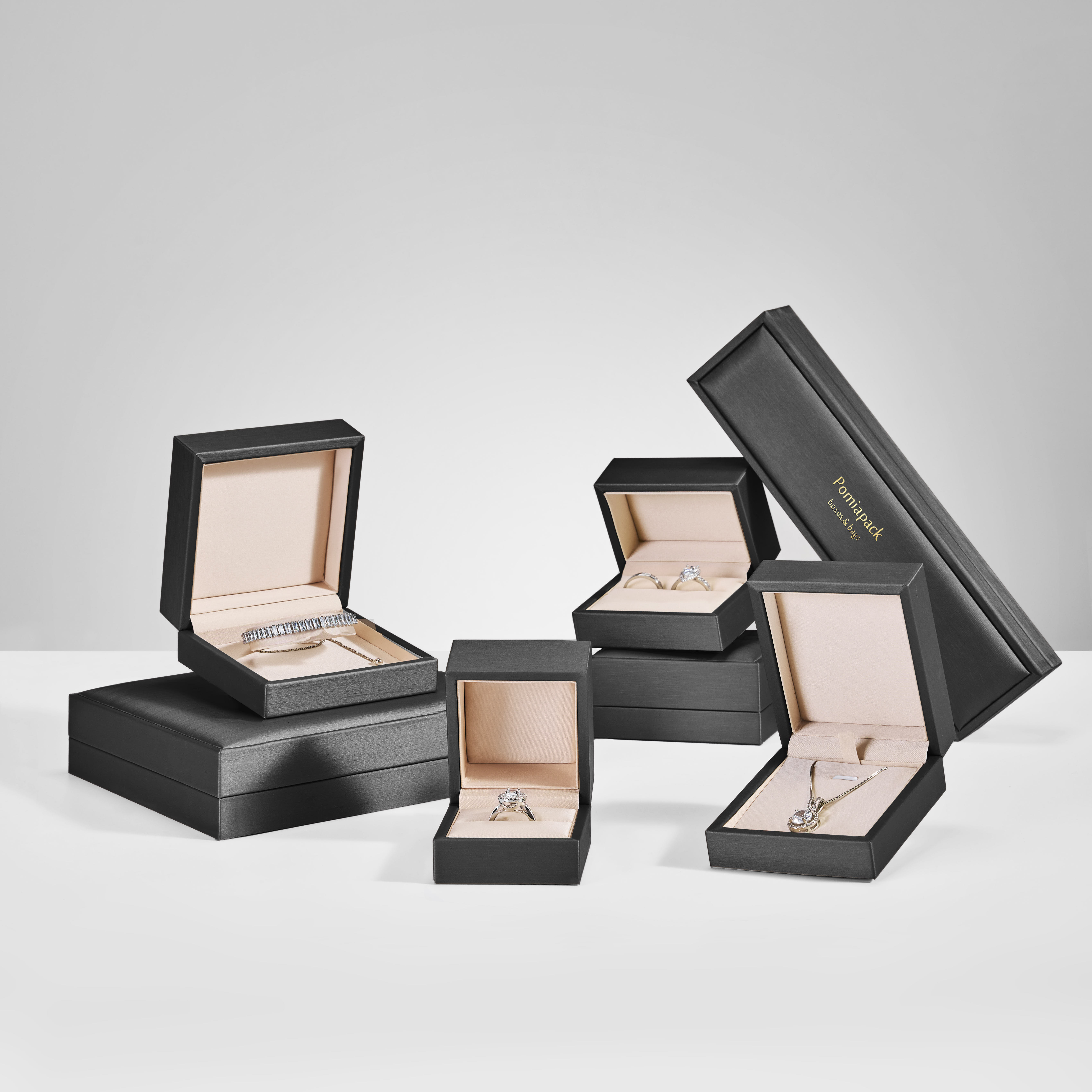 Customized Personalized Logo Black Jewelry Packaging Gift Box Ring Bracelet Earnail Necklace PU Leather Wedding Jewelry Box