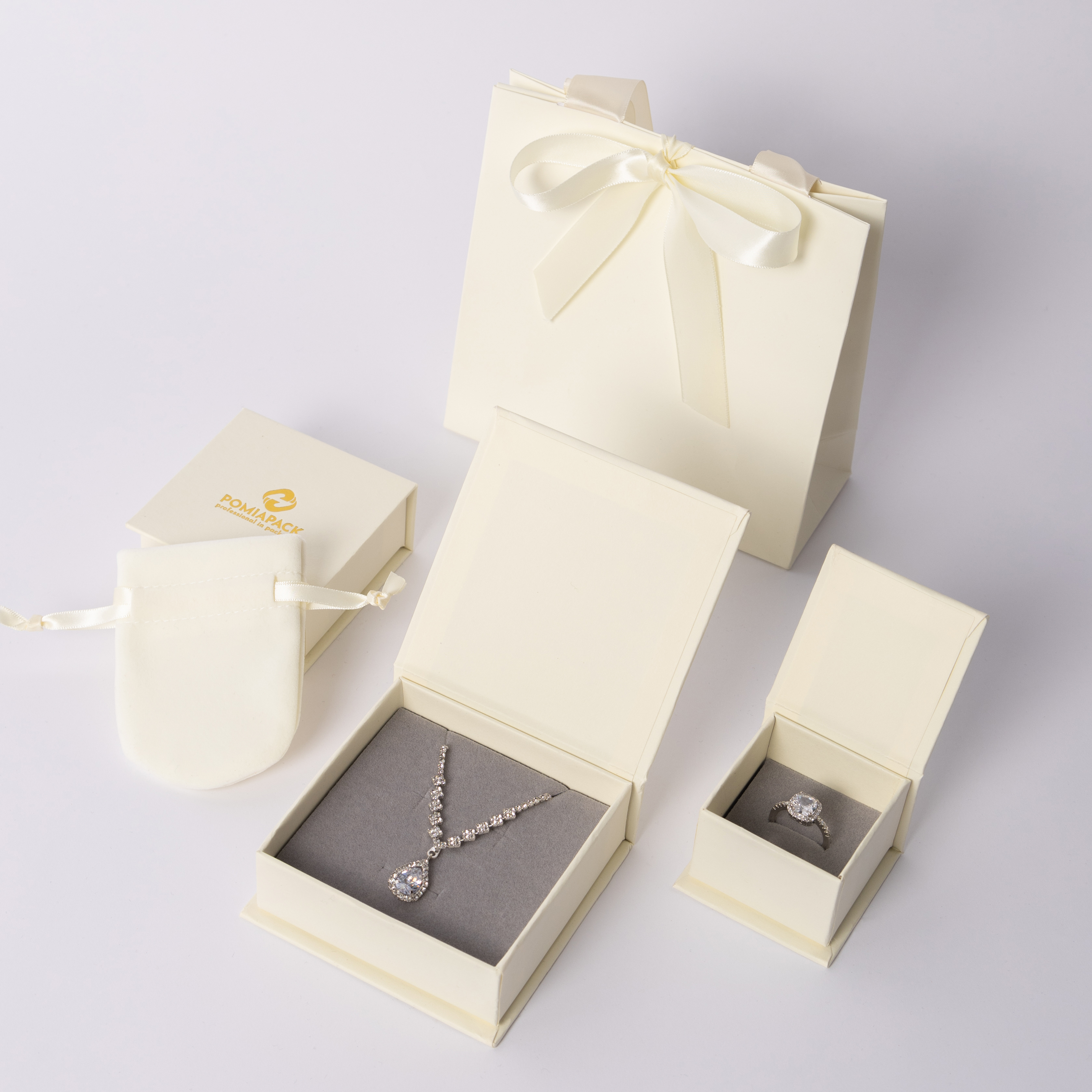 Customized logo cream gift jewelry box, customized paper cardboard magnetic earring jewelry box, jewelry packaging