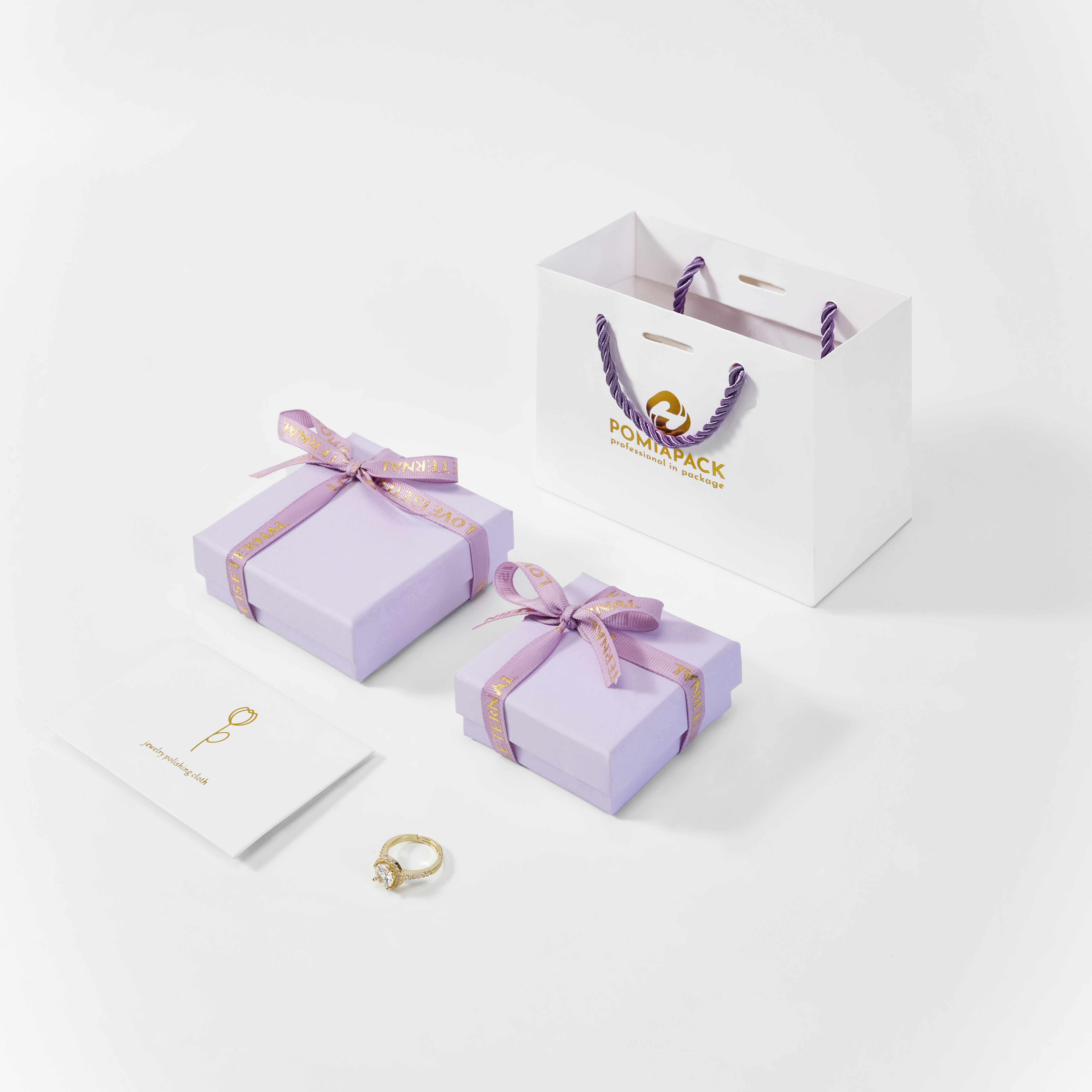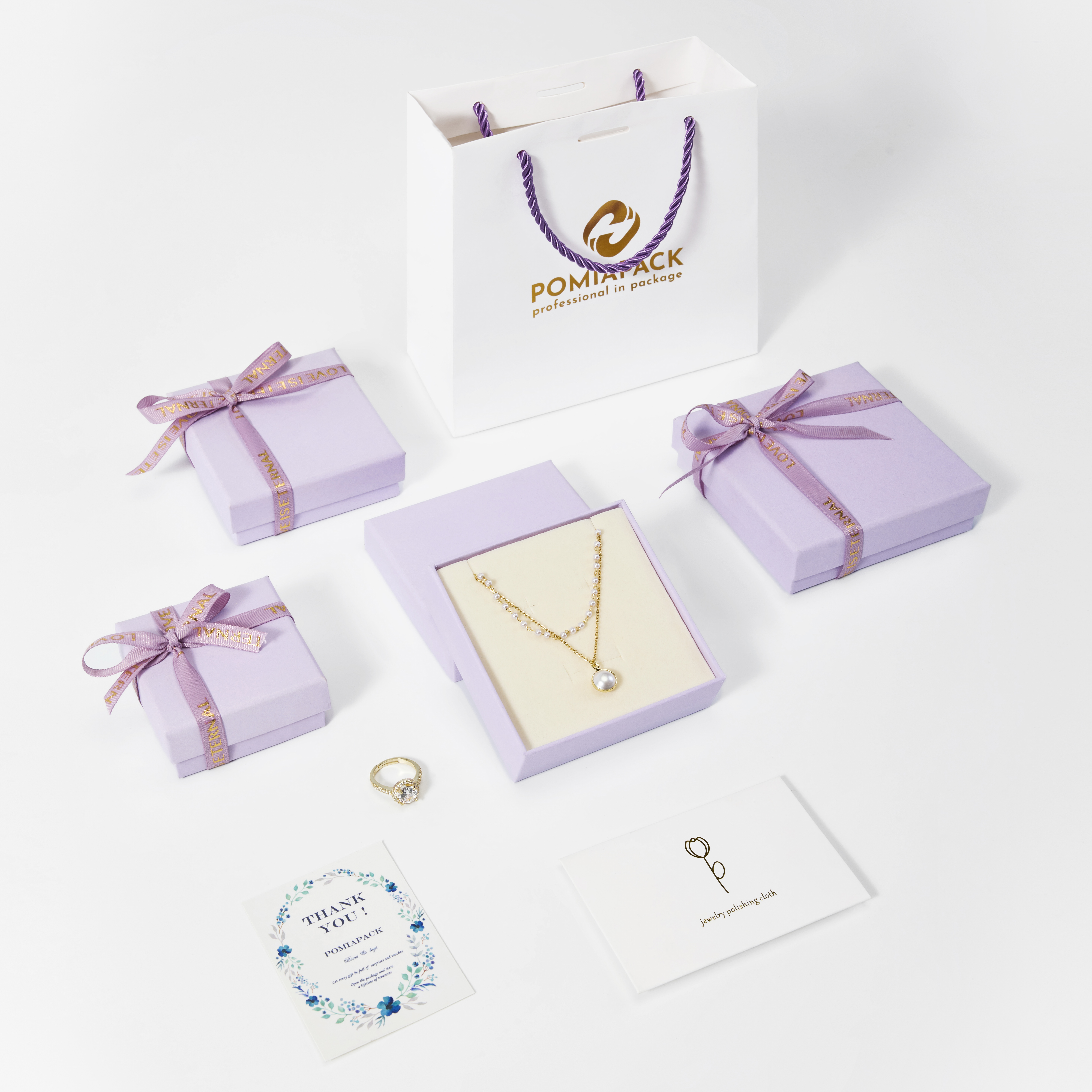 Purple Lialac paper jewelry box with bag, necklace, custom logo jewelry box, card jewelry container