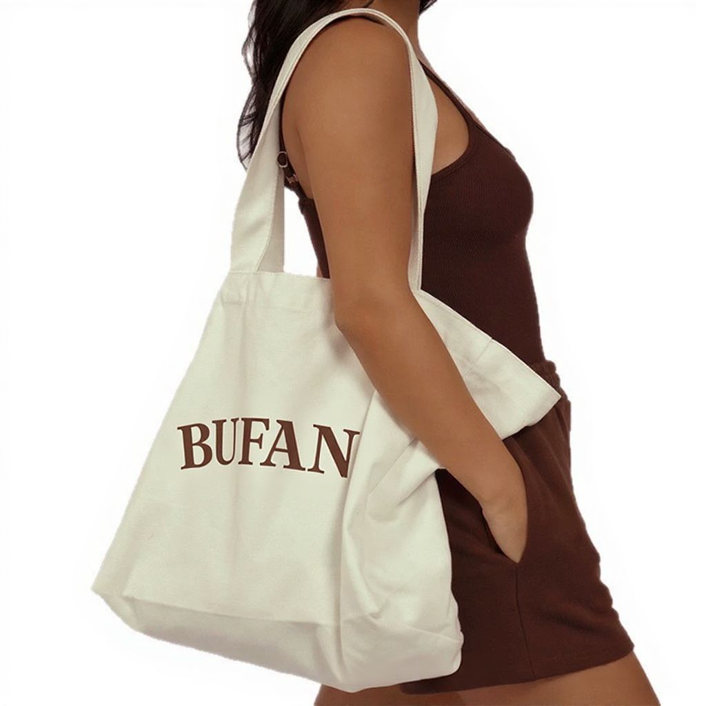 BFYS Brown Large Cotton Canvas Handbag with Letter Pattern Rope Handle Reusable Durable Grocery Shopping Yoga Sports Gift Bag