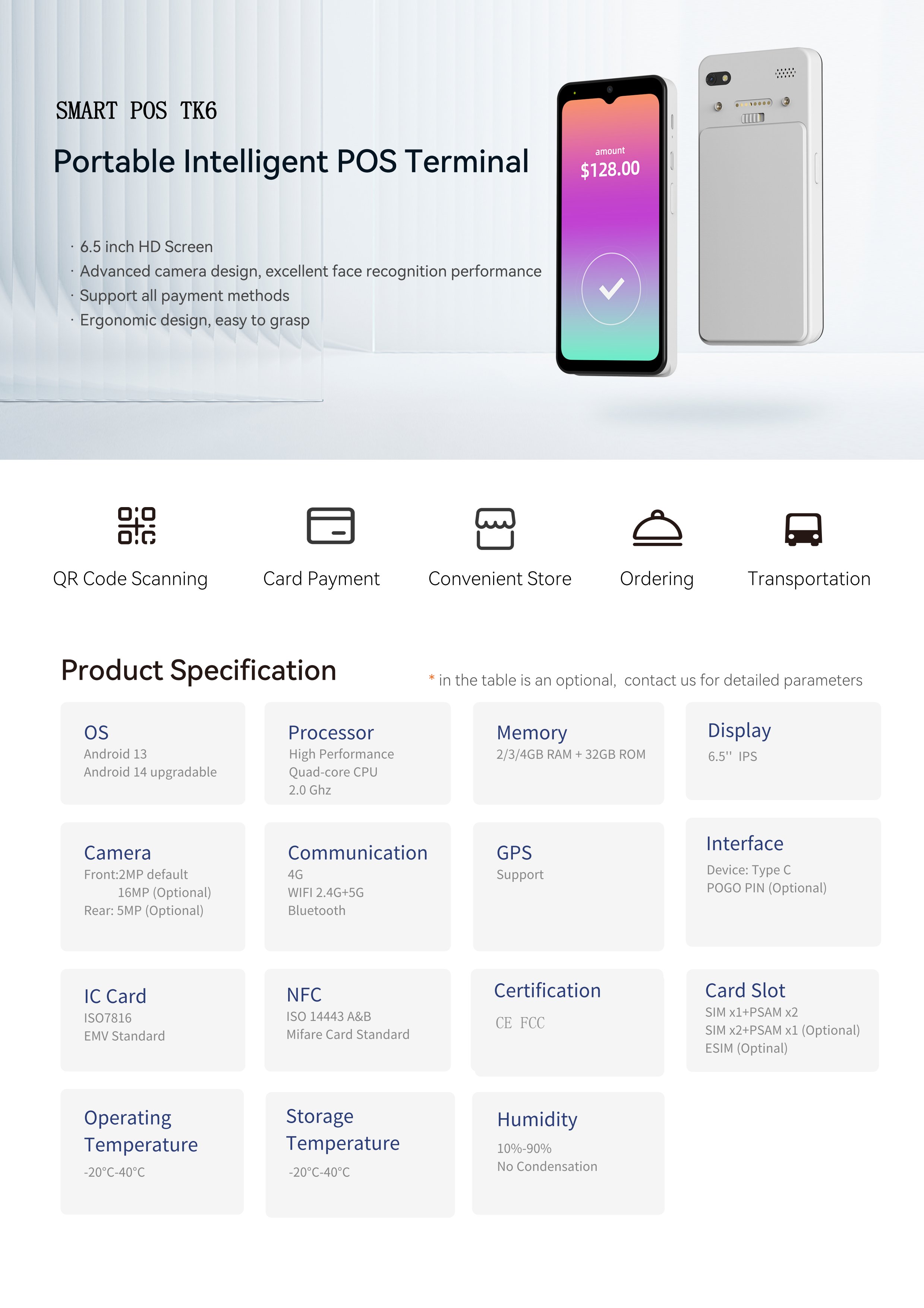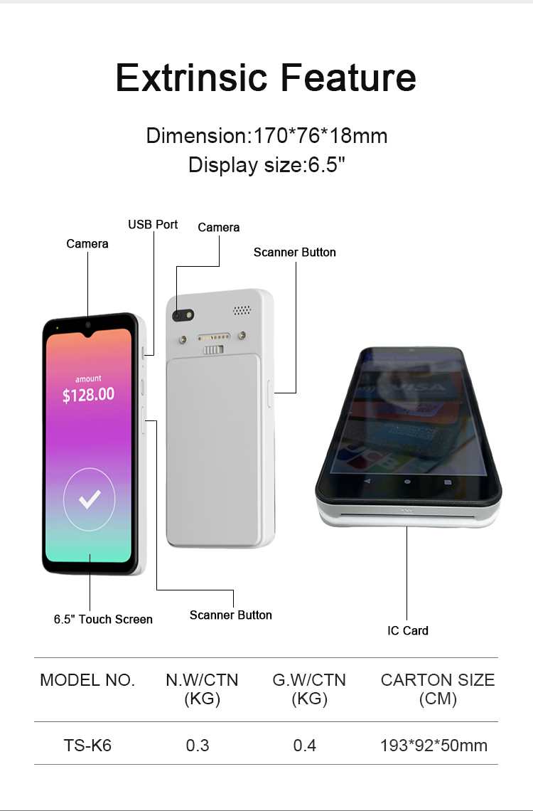 6.5-inch barcode scanner POS terminal NFC IC card reader Rfid inventory warehouse management system Android 15 handheld PDA