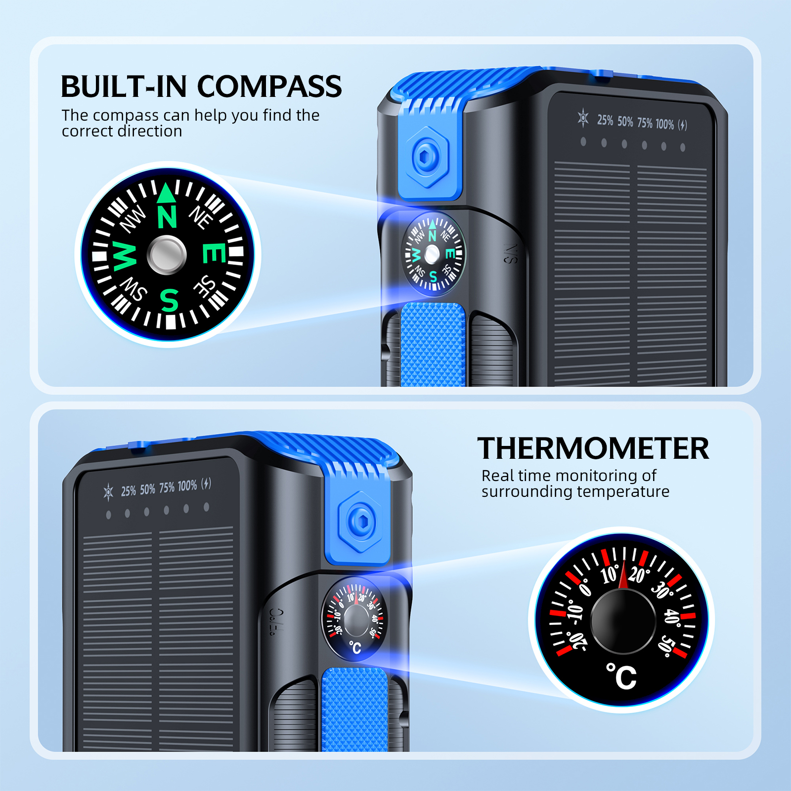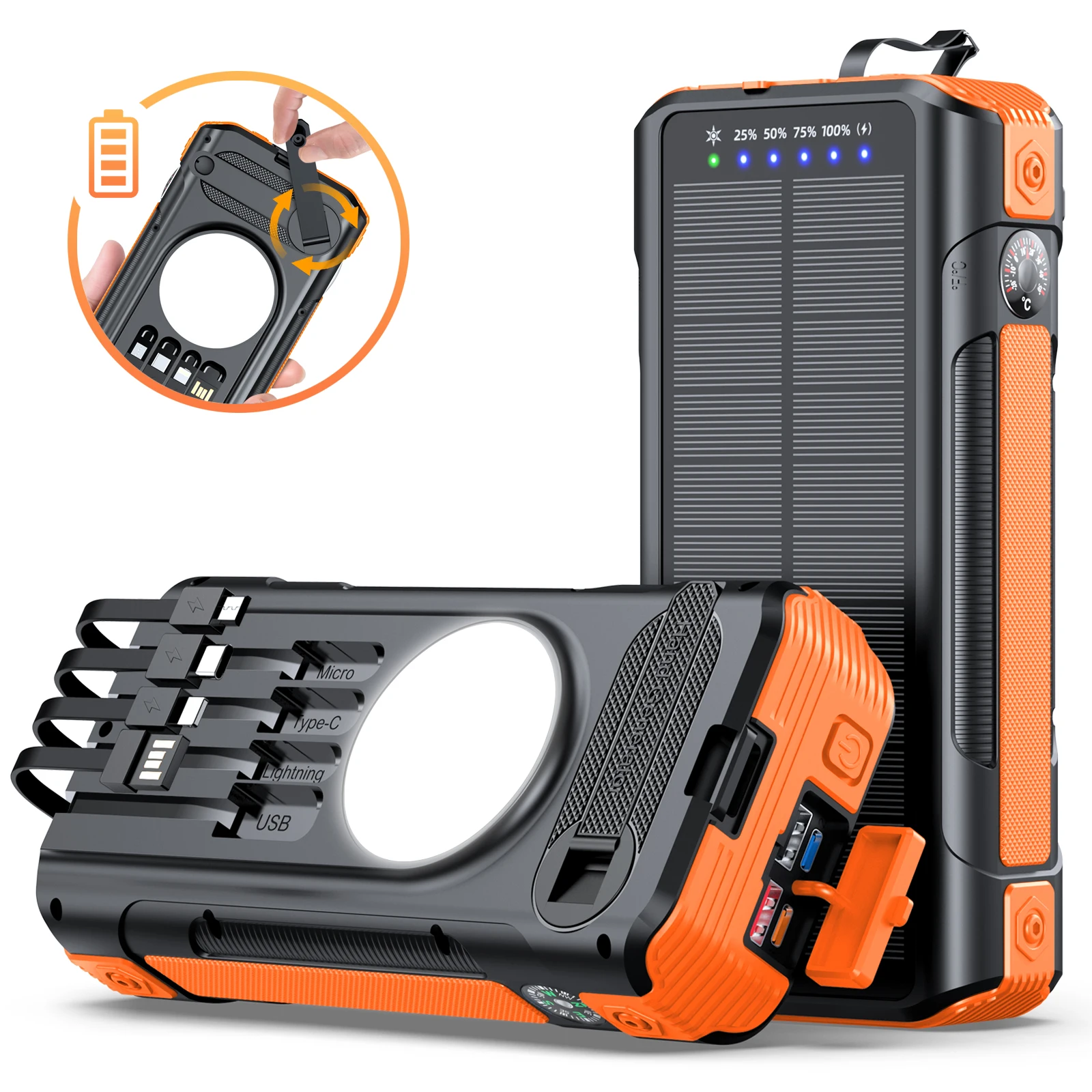 Customized mobile phone accessories brand outdoor waterproof fast charging portable power bank wireless solar power bank 20000mAh